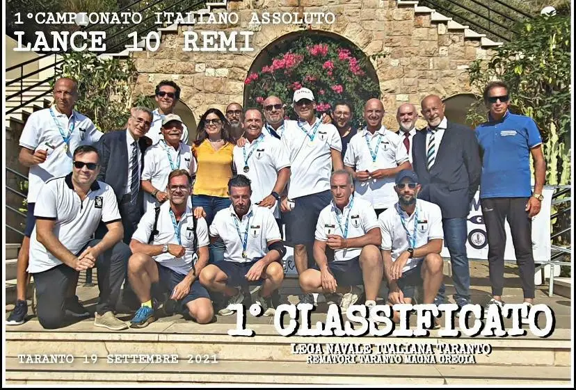La Lega Navale Italiana sezione Taranto ancora protagonista, questa volta grazie alla squadra maschile di canottaggio sedile fisso lance a 10 remi 1^ classificata nel Campionato Italiano Assoluto 2021. L’intera squadra sarà premiata durante la cerimonia di consegna delle benemerenze Coni del 2021 che si svolgerà mercoledì 31 gennaio dalle 17:30 nel salone della Casa del Mutilato, largo Fraccacreta a Bari. Stelle, palme e medaglie al valore atletico saranno consegnate a dirigenti, società, tecnici e atleti che si sono distinti per impegno e risultati. Faranno gli onori di casa, il presidente del Coni Puglia, Angelo Giliberto, il vicepresidente nazionale vicario dell'Ansmes, Domenico Accettura e il comandante del Comando militare Esercito Puglia, colonnello Arcangelo Moro. Di seguito riportiamo i premiati della squadra maschile di canottaggio sedile fisso lance a 10 remi della LNI sezione Taranto:
