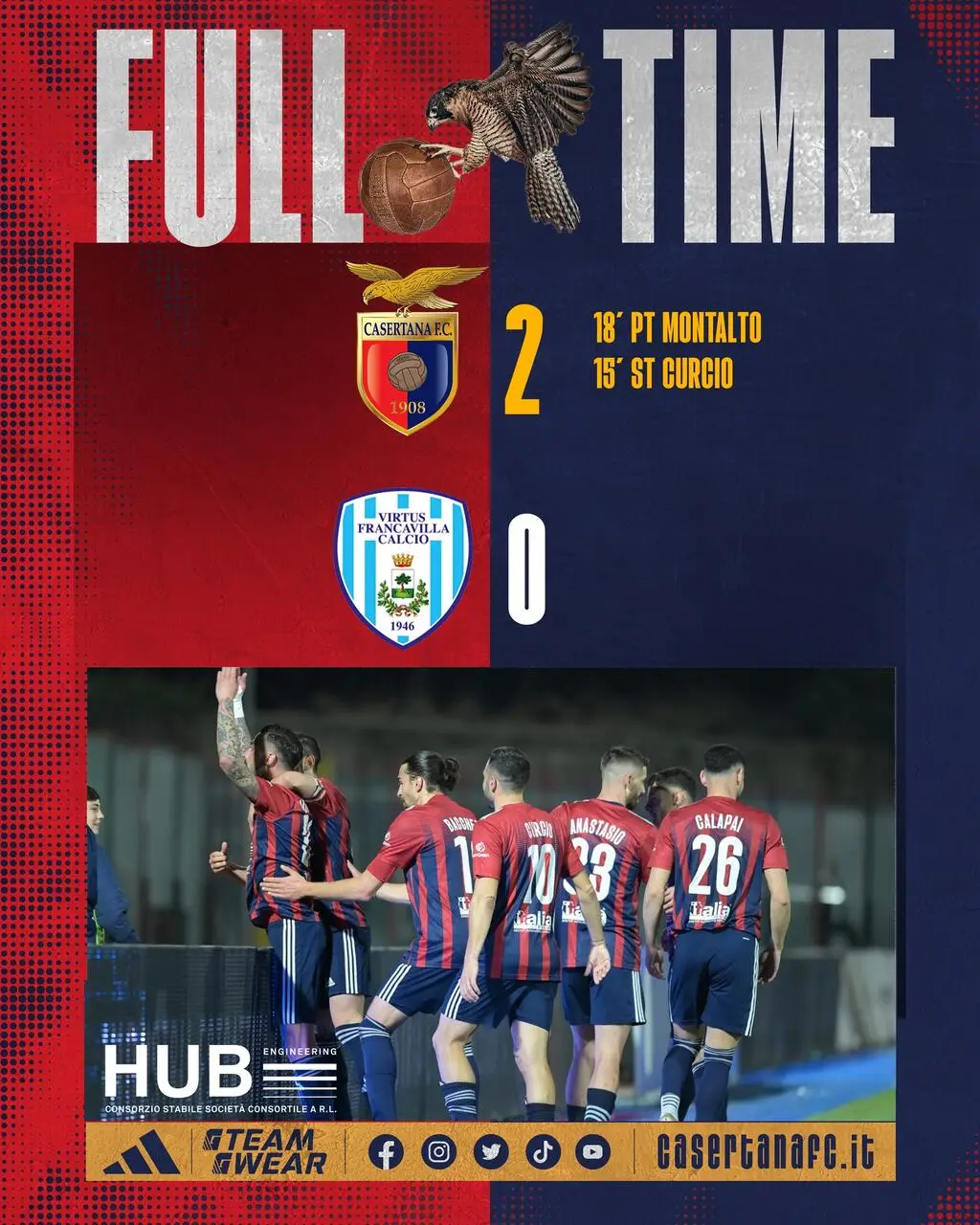 Serie C/C: la Casertana batte la Virtus Francavilla con un gol per tempo