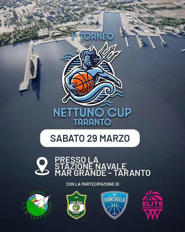 E’ tutto pronto per il 1° Trofeo Nettuno Cup, evento di basket giovanile per la categoria “Aquilotti”. Che si terrà domenica 29 marzo presso la straordinaria location della Stazione Navale Mar Grande di Taranto che renderà tutto più emozionante e indimenticabile. Per l’occasione parteciperanno l’ASD Eden Boys Statte, l’Amatori Ricciardi Taranto Basket Sant’Egidio, l’Elite Lecce e il Basket Francavilla 1963.