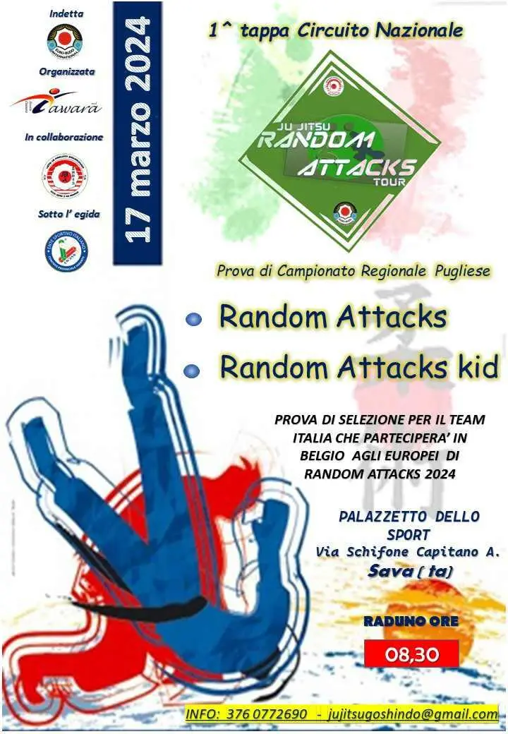 E' tutto pronto per la Prima Tappa del Circuito Nazionale Random Attacks Tour. Di fatto il 17 marzo 2024 presso il Palazzetto dello Sport di Sava con raduno fissato per le 8:30, si terrà la prova di selezione per il team Italia che parteciperà in Belgio agli Europei di Random Attacks 2024.