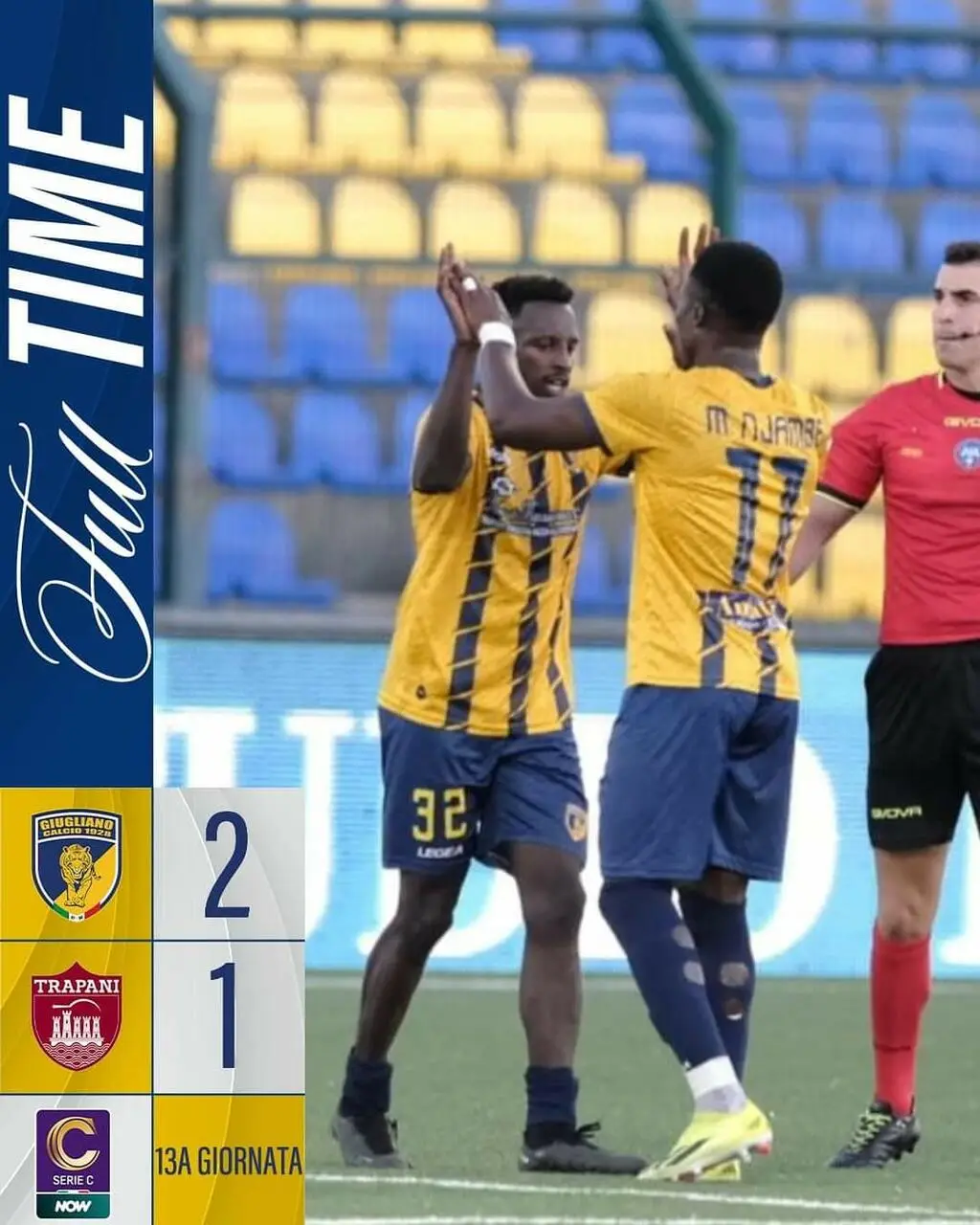 Ammonizioni: al 3' st Padula C. (Giugliano), al 45' st Balde I. (Giugliano) al 16' pt Crimi M. (Trapani), al 31' pt Carriero G. (Trapani), al 34' pt Marino A. (Trapani), al 6' st Celiento D. (Trapani), al 32' st Kanoute M. (Trapani), al 32' st Benedetti A. (Trapani).