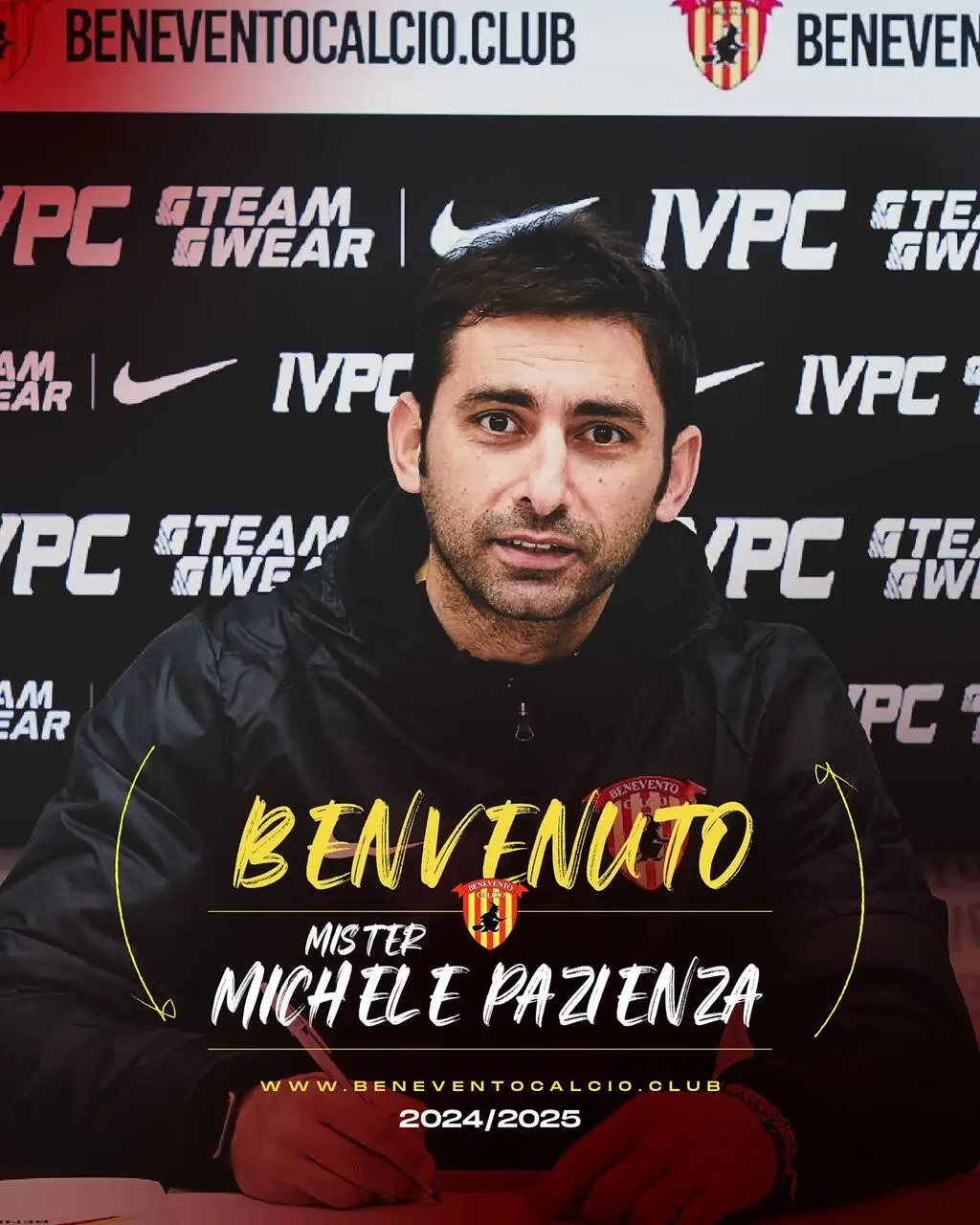 Il Benevento Calcio comunica di aver affidato la conduzione tecnica della prima squadra a mister Michele Pazienza. Il tecnico pugliese, che ha sottoscritto un contratto con il club giallorosso fino al 30 giugno 2026, arriva a Benevento accompagnato dal vice allenatore Antonio La Porta e dal preparatore atletico, prof. Leandro Zoila.