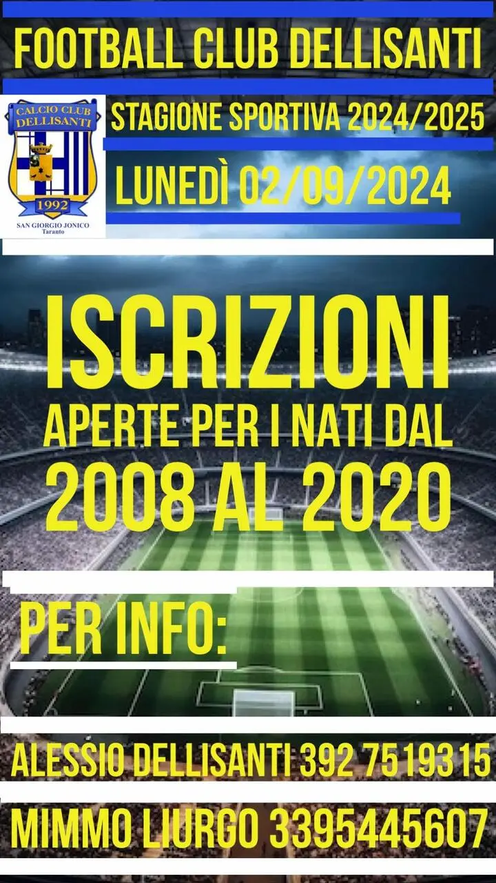 Le vacanze estive sono agli sgoccioli e in casa Calcio Club Dellisanti è veramente tutto pronto per un'altra grande stagione calcistica. Si riparte lunedì 2 settembre con le iscrizioni ancora aperte per tutti i bambini nati tra il 2008 e il 2020. Per maggiori info contattare il Presidente Alessio Dellisanti al 397519315 o il Segretario Mimmo Liurgo al 3395445607.