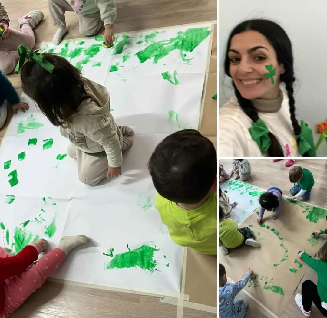 Queste le parole della Direttrice Daniela Riccardo che per l’occasione ha chiesto ai genitori di far indossare a tutti i bimbi un indumento verde simbolo della fortuna e della prosperità: “La giornata si è svolta con balli irlandesi all’aperto e con attività sensoriali tra cui la creazione di un dipinto verde fatto da tutti i bambini del nido che hanno utilizzato la tecnica dello spugnato”.