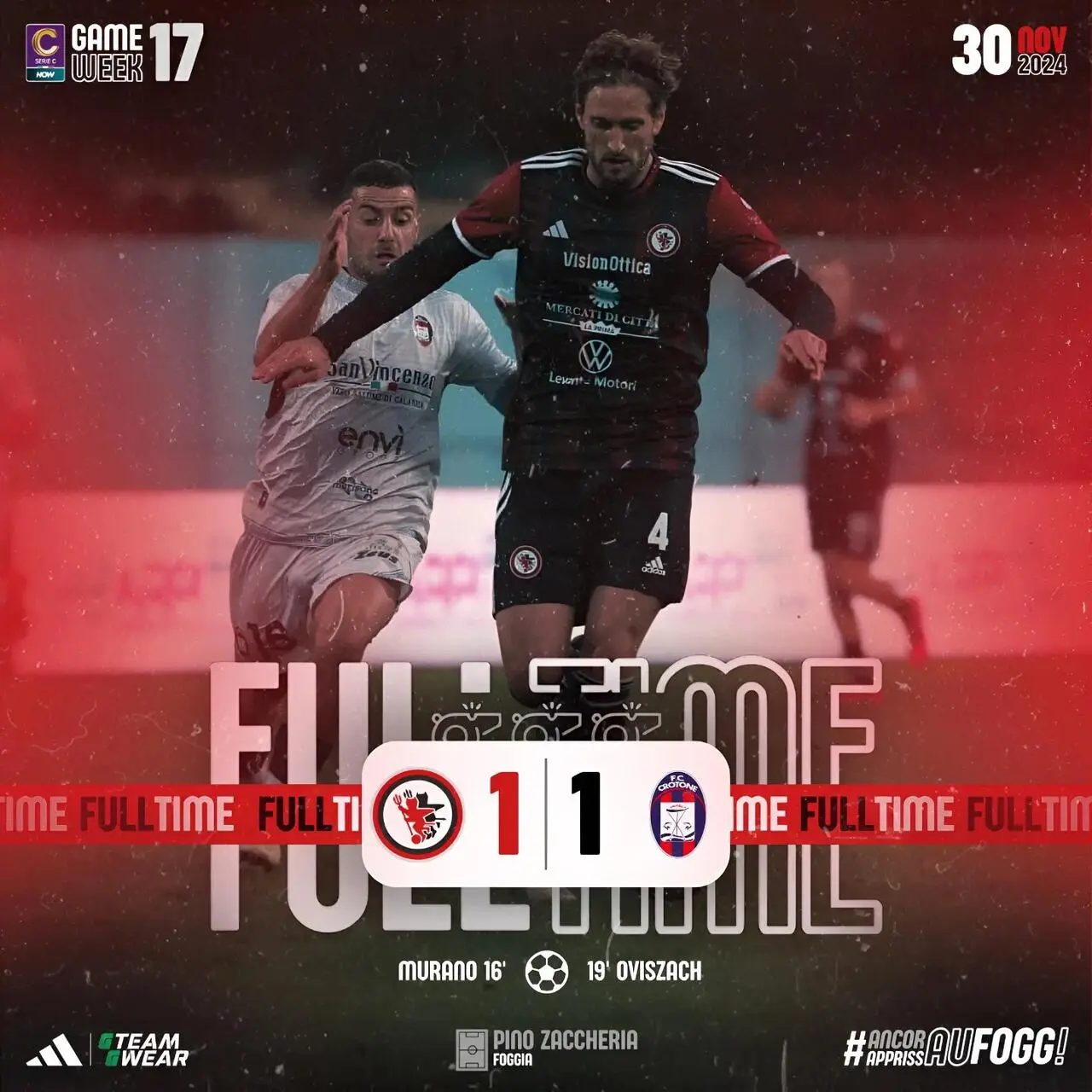 FOGGIA: Perina; Salines, Parodi (40’st Ercolani), Camigliano, Felicioli; Tascone (33’st Danzi), Pazienza (1’st Mazzocco), Gargiulo; Orlando (22’st Zunno), Murano (22’st Emmausso), Millico. A disp.: De Simone, De Lucia, Silvestro, Da Riva, Ascione. All. Zauri