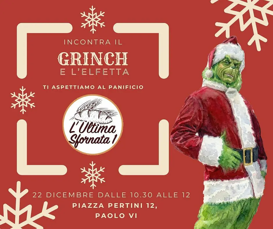 Una nuova grande occasione per incontrare il Grinch dell'Associazione Gio' Gio' e i Supereroi: di fatto il famoso personaggio natalizio il 22 dicembre sarà presente assieme all'Elfetta, dalle 10:30 alle 12, presso il panificio “L'Ultima Sfornata” sito in Piazza Pertini 12 a Paolo VI. Vi aspettiamo per scattare tante foto…