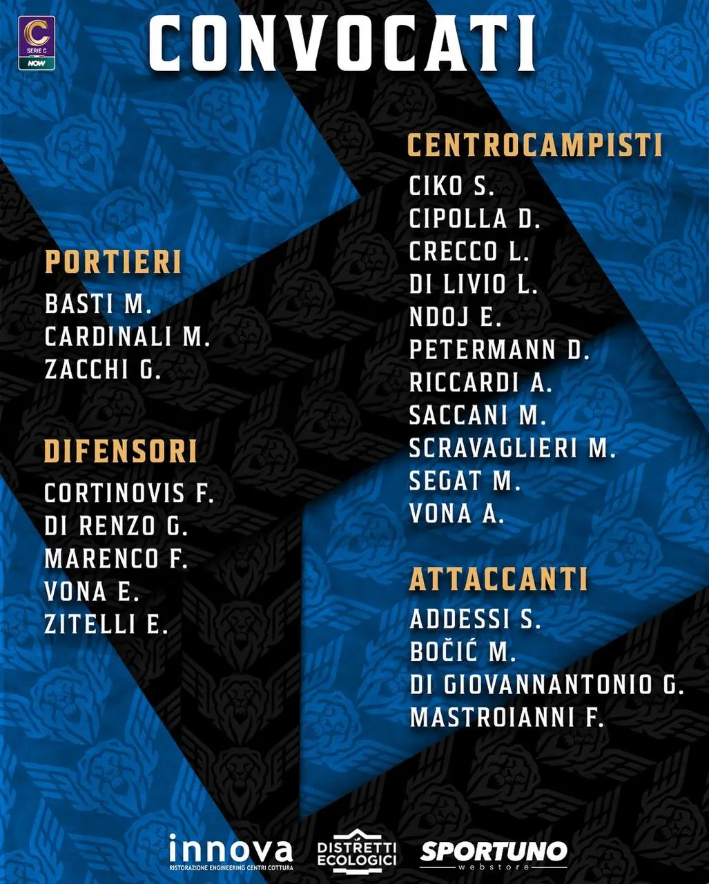Taranto F.c. News FOTONOTIZIA Latina: convocati, a Taranto gli ex Bocic e Crecco 29.08.2024 22:23 0 Twitter Facebook Whatsapp Telegram Email I convocati di Padalino per la sfida di Taranto