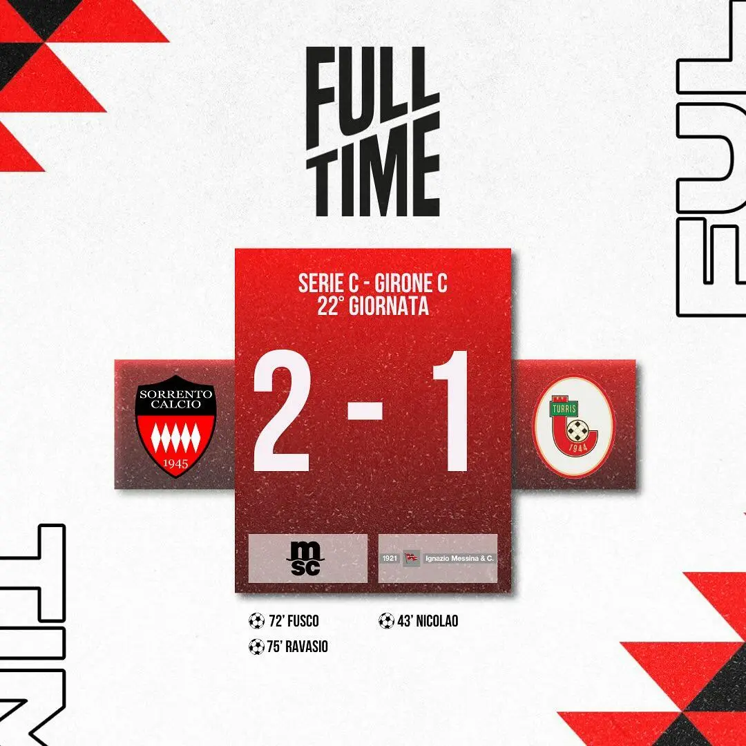 Reti: al 28' st Fusco F. (Sorrento) , al 31' st Ravasio M. (Sorrento) al 44' pt Nicolao G. (Turris) .