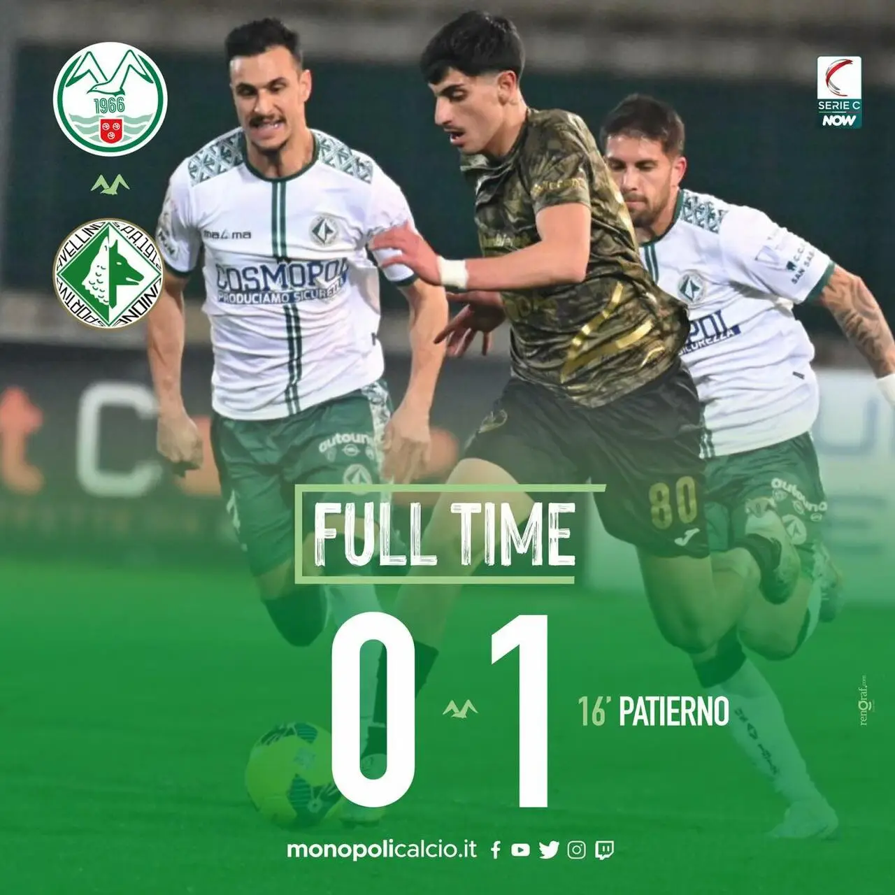 MONOPOLI (3-4-1-2): Gelmi; Fazio, Bizzotto, Angileri (32' st La Vardera); Viteritti, Hamlili, Vitale (1' st Iaccarino), Barlocco; Bulevardi (1' st De Paoli); Sosa (1' st Borello), Tommasini. A disp.: Dalmasso, Silibano, Berman, Fornasier, Ardizzone, Cristallo, De Risio, Simone, Cubretovic, Arioli, Grandolfo. All.: Anaclerio (squalificato Taurino).