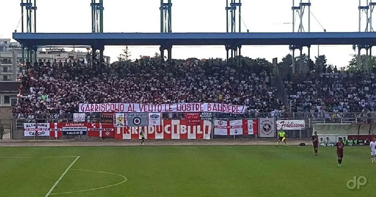 TEAM ALTAMURA per fatti contrari alle norme in materia di ordine e di sicurezza e per fatti violenti commessi dai suoi sostenitori integranti pericolo per l'incolumità pubblica, consistiti nell'aver danneggiato i battitacchi in alluminio posti nel Settore Ospiti loro riservati.
