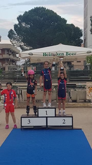 Nella categoria Giovanissimi 1 femminile, le due atlete della FederClub salgono entrambe sul podio: Giorgia Carrieri primo posto sia nella gara di destrezza che in quella in linea di metri 800, gara nella quale ha doppiato entrambe le avversarie, Sara Mastroberardino al secondo posto.