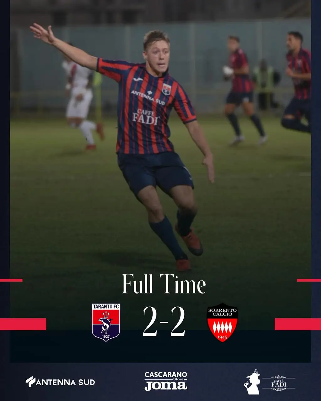 Taranto: i rossoblù conquistano un punto con il Sorrento