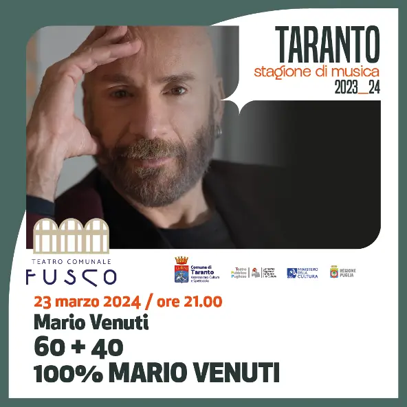 I successi di una vita insieme ai brani più recenti, in quella che si preannuncia, a detta del cantautore stesso, “a very cool night”. Mario Venuti, sabato 23 marzo alle ore 21.00, sbarca al Teatro Fusco con il suo tour “60+40 100% Mario Venuti”, una chiusura col botto per lo straordinario palinsesto musicale messo a punto dallo storico teatro tarantino in collaborazione con l’Amministrazione comunale, e con il supporto del Teatro Pubblico Pugliese. L’assessore comunale alla Cultura e agli Eventi, Angelica Lussoso, nel sottolineare l’ottima scelta della programmazione musicale da parte della Direzione del Teatro Fusco, saluta l’arrivo a Taranto del grande cantautore siciliano: «L’Amministrazione comunale ed il Teatro Fusco hanno lavorato instancabilmente sia per rafforzare la sinergia fra cultura e spettacolo, che è fondamentale per la crescita artistica della nostra città, sia per allestire un cartellone d’eccezione con l’obiettivo di esaltare alcuni tra i migliori interpreti della musica nazionale, come Mario Venuti. Con questo concerto, il nostro splendido Teatro si conferma una volta di più come la casa naturale della musica d’autore». “60+40 100% Mario Venuti” è lo speciale tour nei teatri e nei club con cui il cantautore e chitarrista siciliano festeggia con i suoi fan due importanti milestone : i 60 anni di età e i 40 anni di carriera. Un appuntamento unico, che lo stesso artista ha definito “un concerto più vicino al jazz che al pop rock” dove non mancherà “una spruzzata di Brasile”. Dagli anni ’80 e dai primi passi con la band “Denovo” fino poi al 1994 e all’esordio da solista, dalle partecipazioni a Sanremo nei primi anni Duemila con “Crudele ”, “ Un altro posto nel mondo ” e “ A ferro e fuoco ”fino al decennio in cui sperimenta e crea di più, con gli album “L’ultimo romantico”, “Il tramonto dell’Occidente”, “Motore di vita” e “Soyuz 10”. Aperto alle contaminazioni e alle culture, non ha mai nascosto il suo amore per il Sudamerica, come dimostra il singolo del 19 maggio scorso, “Napoli-Bahia ”, anticipo del nuovo disco, in cui crea un ideale “ponte” tra due mondi così diversi ma così vicini, quello delle sconfinate spiagge brasiliane e quello della città multiforme ai piedi del Vesuvio. Il singolo successivo, “Segui i tuoi demoni” e il conseguente tour estivo, non hanno fatto altro che far aumentare l’ hype nei confronti di questo speciale “doppio anniversario”. Ad accompagnare Mario Venuti sul palco ci saranno Pierpaolo Latina al pianoforte, Giuseppe Tringali alla batteria e Vincenzo Virgillito al contrabbasso. «Mario Venuti è un artista capace sempre di trasportarci in luoghi lontani grazie alla sua musica – ha commentato Michelangelo Busco, direttore del Teatro comunale Fusco –. Il nostro teatro si riempirà delle sue sonorità coinvolgenti, e per il pubblico sarà un’autentica festa».