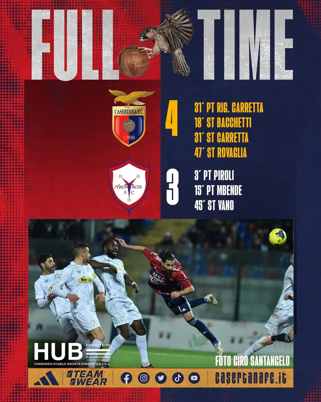 Serie C/C: Monterosi beffato ancora nel recupero. Vince la Casertana