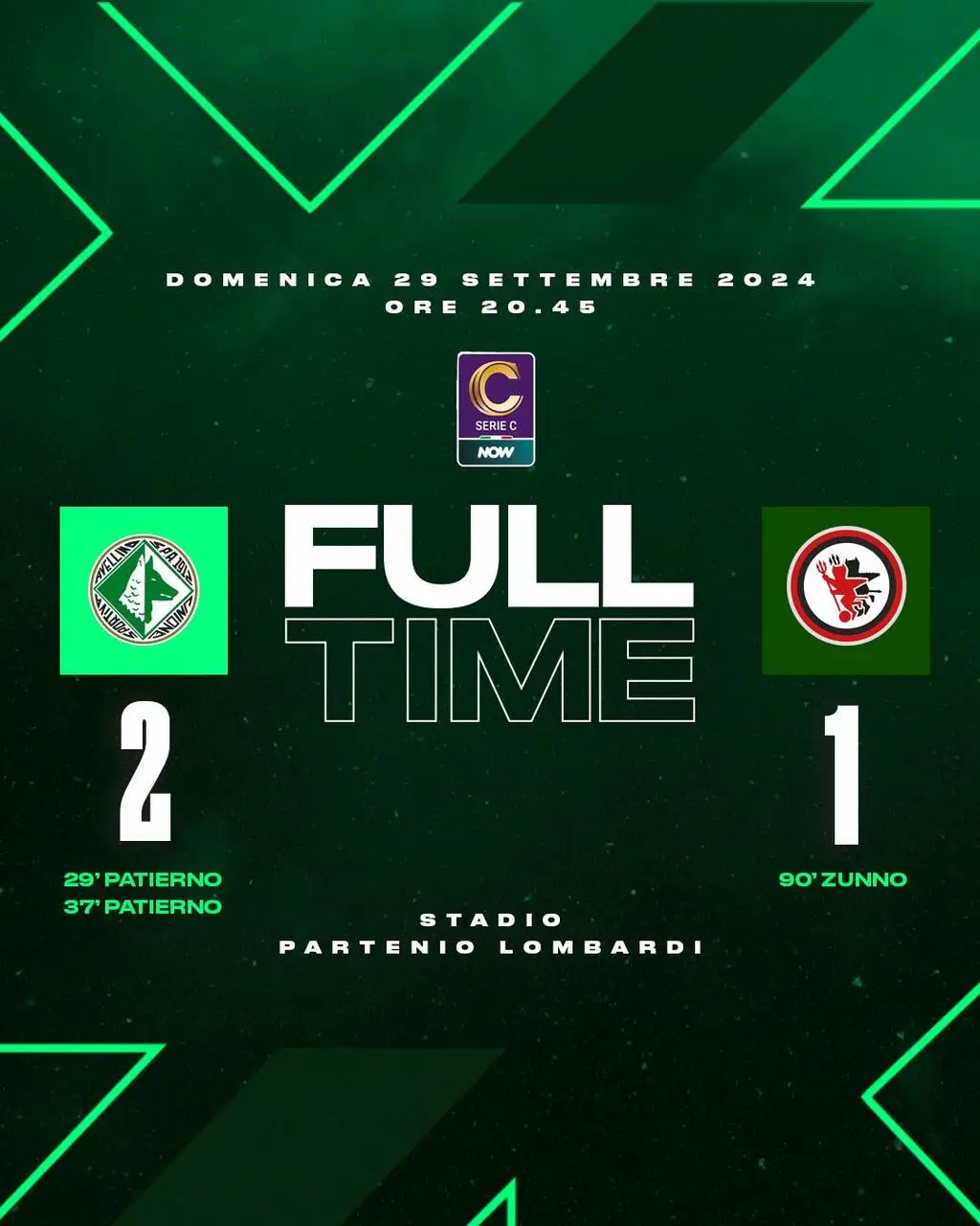 AVELLINO (4-3-1-2): Iannarilli; Cancellotti, Rigione (44' st Benedetti), Enrici, Frascatore (38' st Liotti); De Cristofaro, Palmiero, Sounas (38' st Mutanda); D'Ausilio (44' st Redan); Patierno (18' st Vano), Gori. A disp.: Marson, Armellino, De Michele, Arzillo, Solaro, Campanile, Llano. All.: Biancolino.