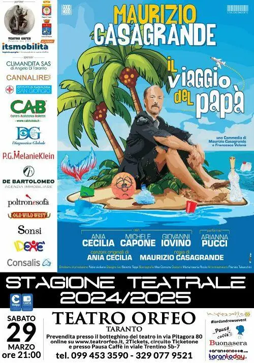 Il sipario si alza sabato 29 marzo alle ore 21 sul palco del Teatro Orfeo di Taranto con “Il viaggio del papà”, uno spettacolo scritto, diretto e interpretato da Maurizio Casagrande.