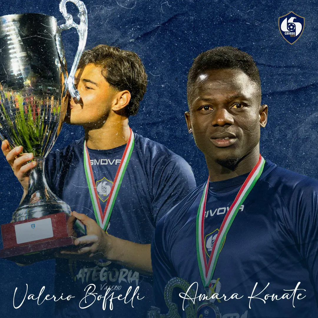La Cavese 1919 rende noto di aver acquisito anche per la stagione sportiva 2024/25, le prestazioni sportive dei calciatori Valerio Boffelli ed Amara Konate, entrambi tra i protagonisti della cavalcata Biancoblù culminata con la straordinaria vittoria del Girone G di Serie D.