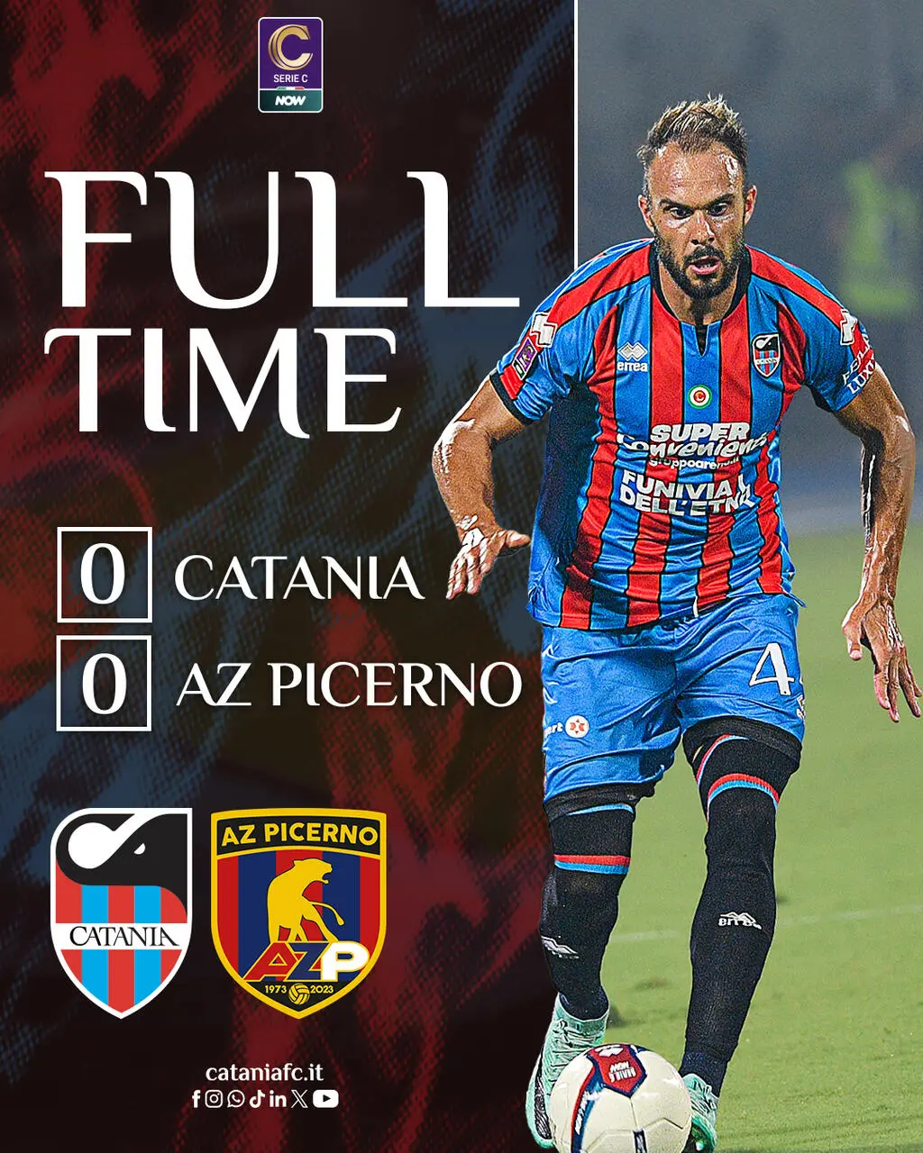 CATANIA (3-4-2-1): Bethers 6; Quaini 6, Di Gennaro 6.5, Castellini 7; Guglielmotti 6 (89' Montalto sv), De Rose 6 (46' Stoppa 6), Sturaro 6.5, Anastasio 6; Luperini 6 (67' Carpani 6), Lunetta 6 (85' Verna sv); Inglese 6 (67' D'Andrea 6). A disp.: Adamonis, Torrisi, Gega, Ciniero, Raimo, Forti, Jiménez. All.: Toscano 6