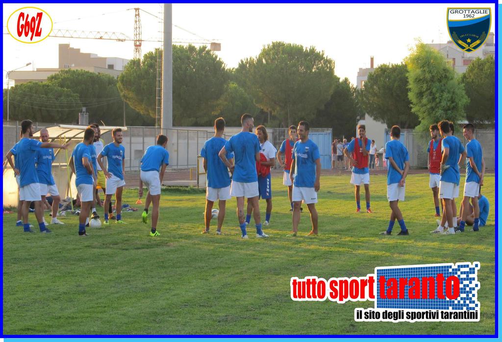 E’ iniziata ieri pomeriggio la stagione calcistica dell’Ars et Labor Grottaglie. I giocatori si sono radunati allo stadio D’amuri per iniziare la preparazione atletica in vista del campionato di prima categoria che iniziera’ il prossimo 24 settembre. La rosa composta da circa 25 calciatori è di età compresa tra i 17 e i 39 anni, un mix di esperienza e spensieratezza che agli ordini di mister Massimo Marinelli, del preparatore atletico Giuseppe Ducale, coadiuvati da mister Giuseppe De Bartolo e dal preparatore dei portieri Antonio Degli Schiavi hanno iniziato a lavorare sul campo. Dopo la consueta raccolta dei dati di misurazione i giocatori sono scesi in campo per sostenere il primo allenamento stagionale. L’attività è stata un’alternanza tra esercizi atletici ed esercizi con la palla, per poi terminare con la tradizionale partitella a campo ridotto. Sudore e fatica hanno caratterizzato le circa 2 ore e mezza di lavoro con richiami tecnici da parte di mister Marinelli che ha apprezzato l’impegno profuso dai suoi ragazzi. A bordo campo, come non si vedeva da tempo, l’intera dirigenza ha assistito all’allenamento con attenzione e partecipazione emotiva. Il Grottaglie si è allenato davanti ad un buon numero di spettatori, tra cui alcuni rappresentanti del tifo organizzato. Un segnale non trascurabile che evidenzia un avvicinamento della tifoseria alla squadra dopo le tante delusioni delle stagioni scorse. I giocatori avranno la domenica libera e riprenderanno la preparazione, sempre al D’amuri, lunedì 21 per tutta la settimana.