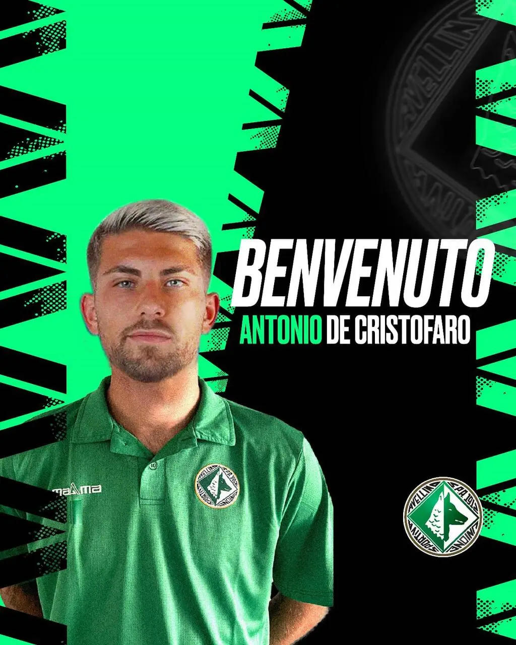 L’U.S. Avellino 1912 comunica di aver acquisito, a titolo definitivo dall’AZ Picerno, il diritto alle prestazioni sportive del calciatore Antonio De Cristofaro. Nato a Foggia il 10 Gennaio 2000 il giocatore pugliese è cresciuto nelle giovanili del club della propria città.