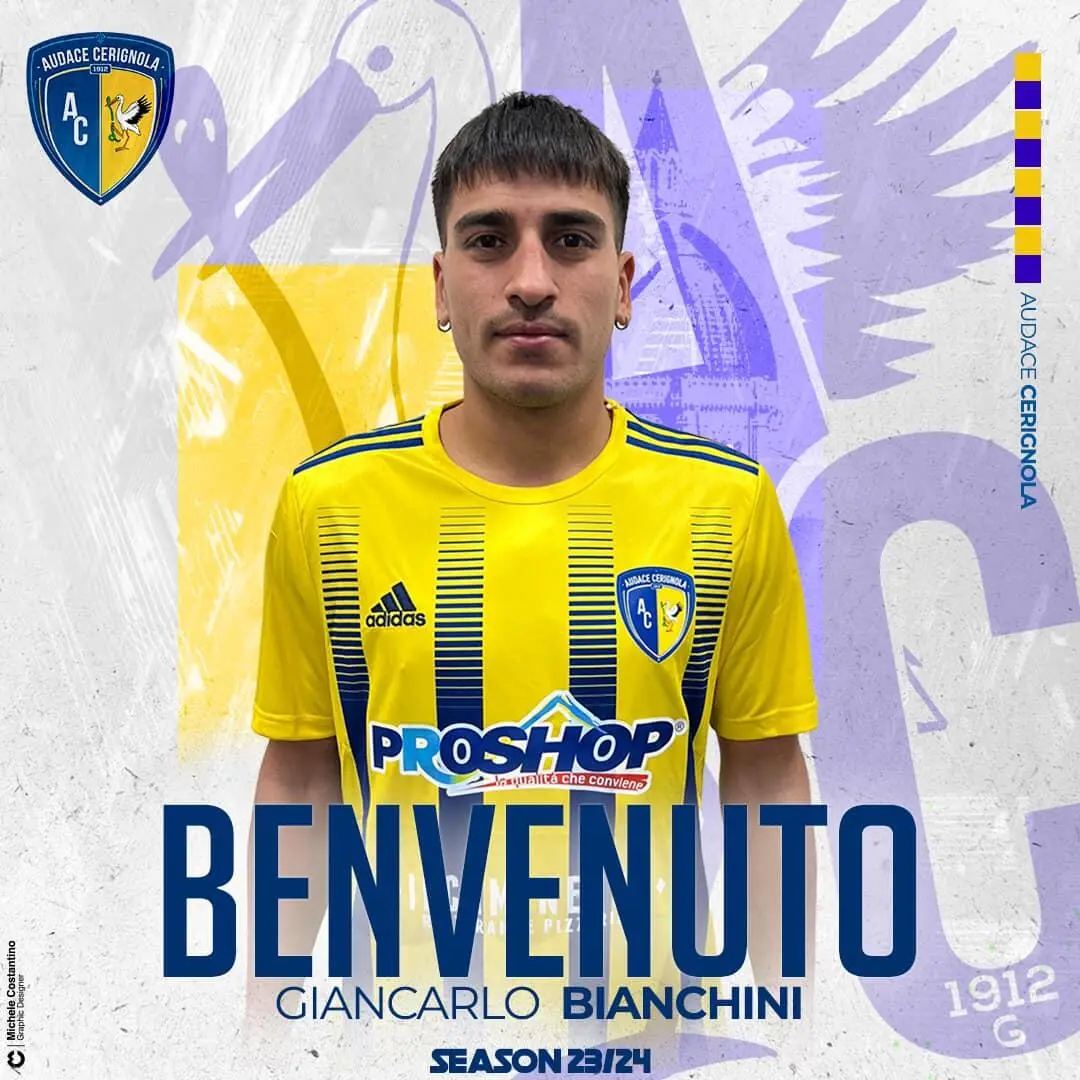 La S.S. Audace Cerignola S.r.l. comunica di aver acquisito dall’U.S. Fasano le prestazioni sportive del calciatore Giancarlo Bianchini.