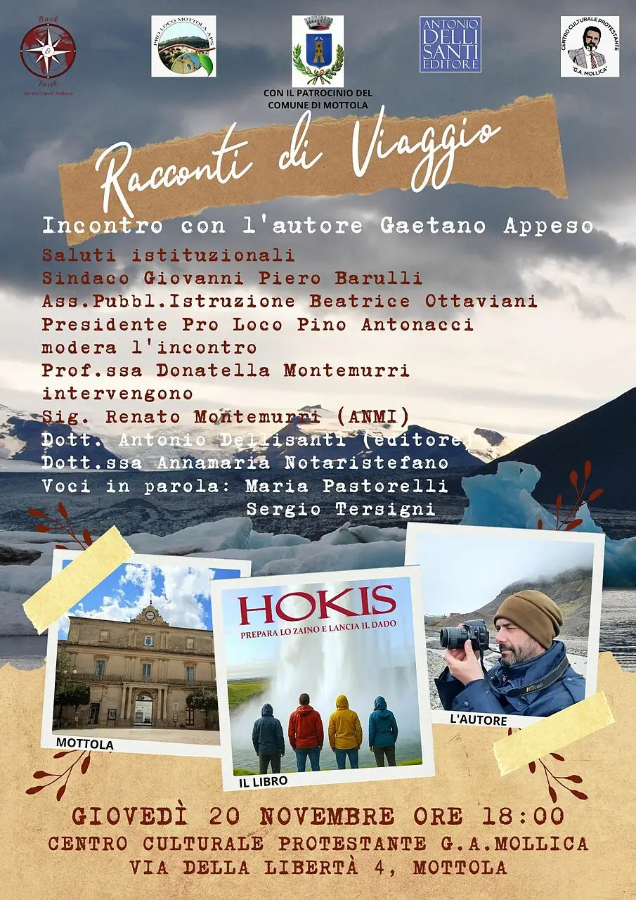 Giovedì 20 novembre, alle ore 18:00, il Centro Culturale Protestante G.A. Mollica (via della Libertà 4) ospiterà un nuovo appuntamento della rassegna culturale, un incontro dedicato al viaggio come avventura, crescita e trasformazione interiore. In questa occasione verrà presentato il libro “Hokis – Prepara lo zaino e lancia il dado” (Antonio Dellisanti Editore), opera che sta riscuotendo particolare attenzione per l’originalità della sua narrazione.