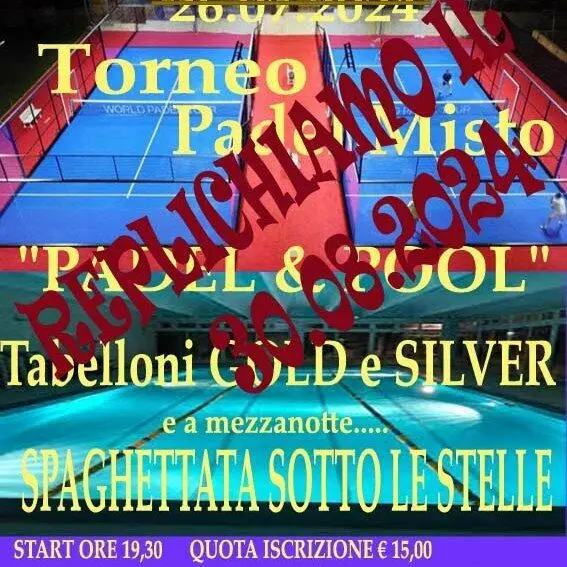 Riparte con un grandissimo evento la stagione sportiva del Centro Sportivo “Belle Vue”. Di fatto il 30 agosto si ripeterà la fortunata manifestazione di “Padel & Pool” con tabelloni Gold e Silver. Il torneo inizierà alle ore 19:30 con quota d'iscrizione di 15 euro a persona. A 00 poi prevista spaghettata sotto le stelle…