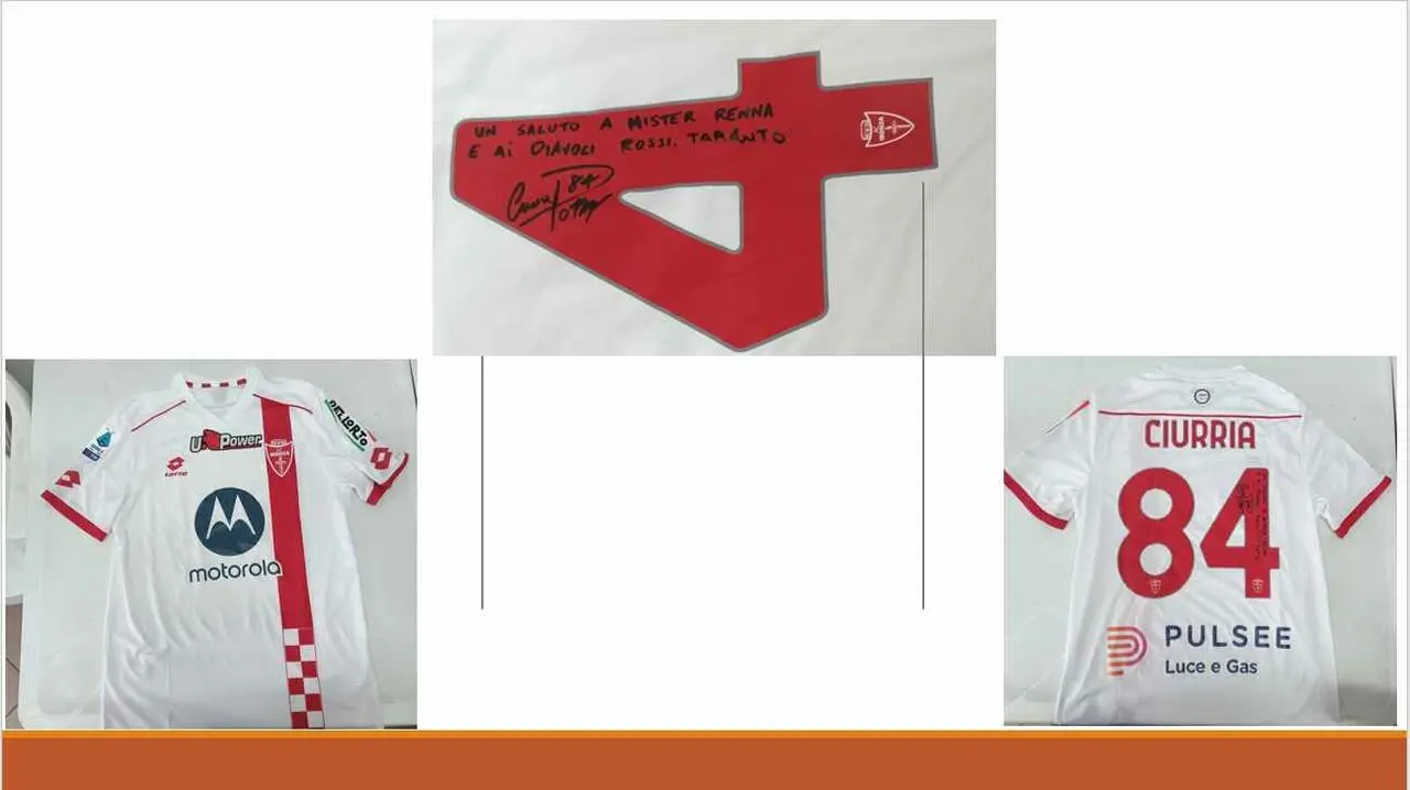 La società dei Diavoli Rossi, nelle figure del Presidente Oronzo Renna e del DT Gianpaolo Renna assieme a tutto lo staff tecnico e dirigenziale, ci tiene a ringraziare pubblicamente il centrocampista classe 1995 del Monza (formazione che milita in serie A) Patrick Ciurria per aver donato e firmato al glorioso club ionico la sua maglia numero 84 che ora è custodita gelosamente all'interno della sede sociale dei Diavoli Rossi. Pertanto la scuola calcio tarantinia augura al calciatore un grande proseguo di stagione e di carriera.