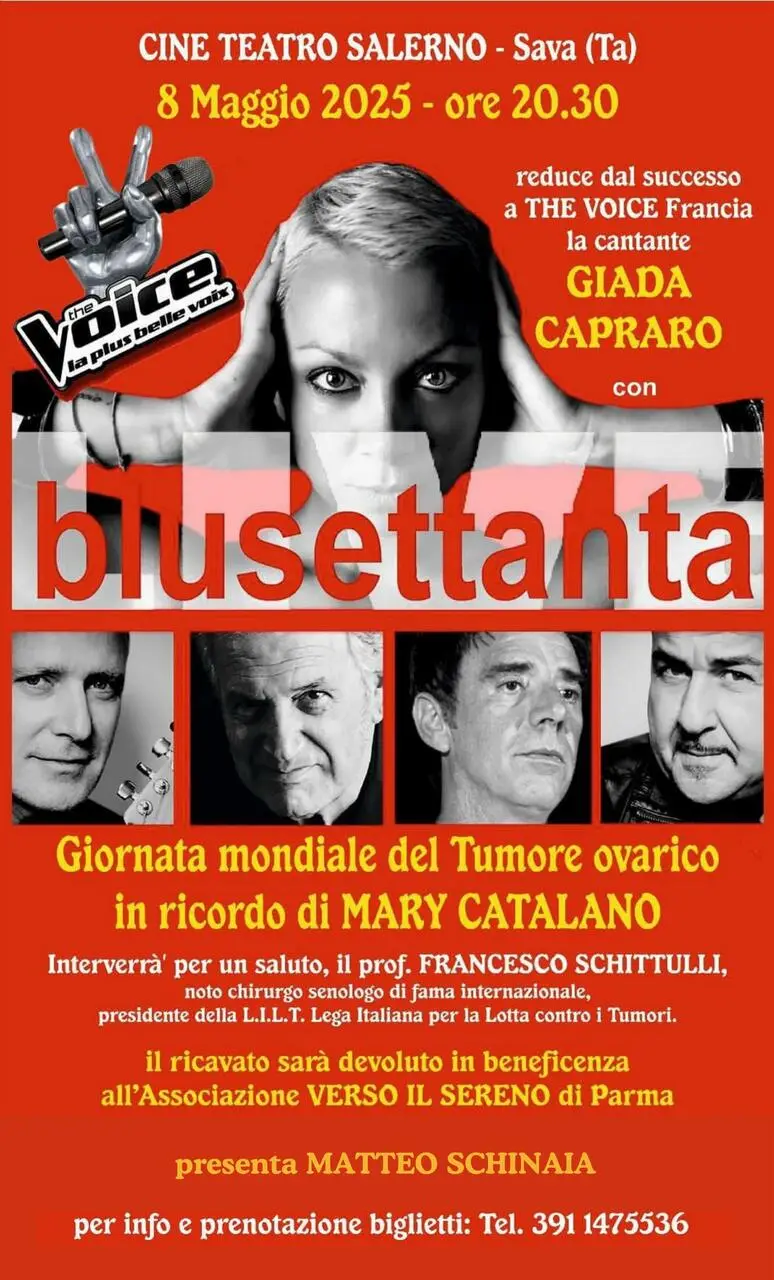 Una serata tra emozione, musica e impegno civile quella in programma giovedì 8 maggio 2025 alle ore 20.30 al Cine Teatro Salerno di Sava, in occasione della Giornata mondiale del Tumore ovarico.