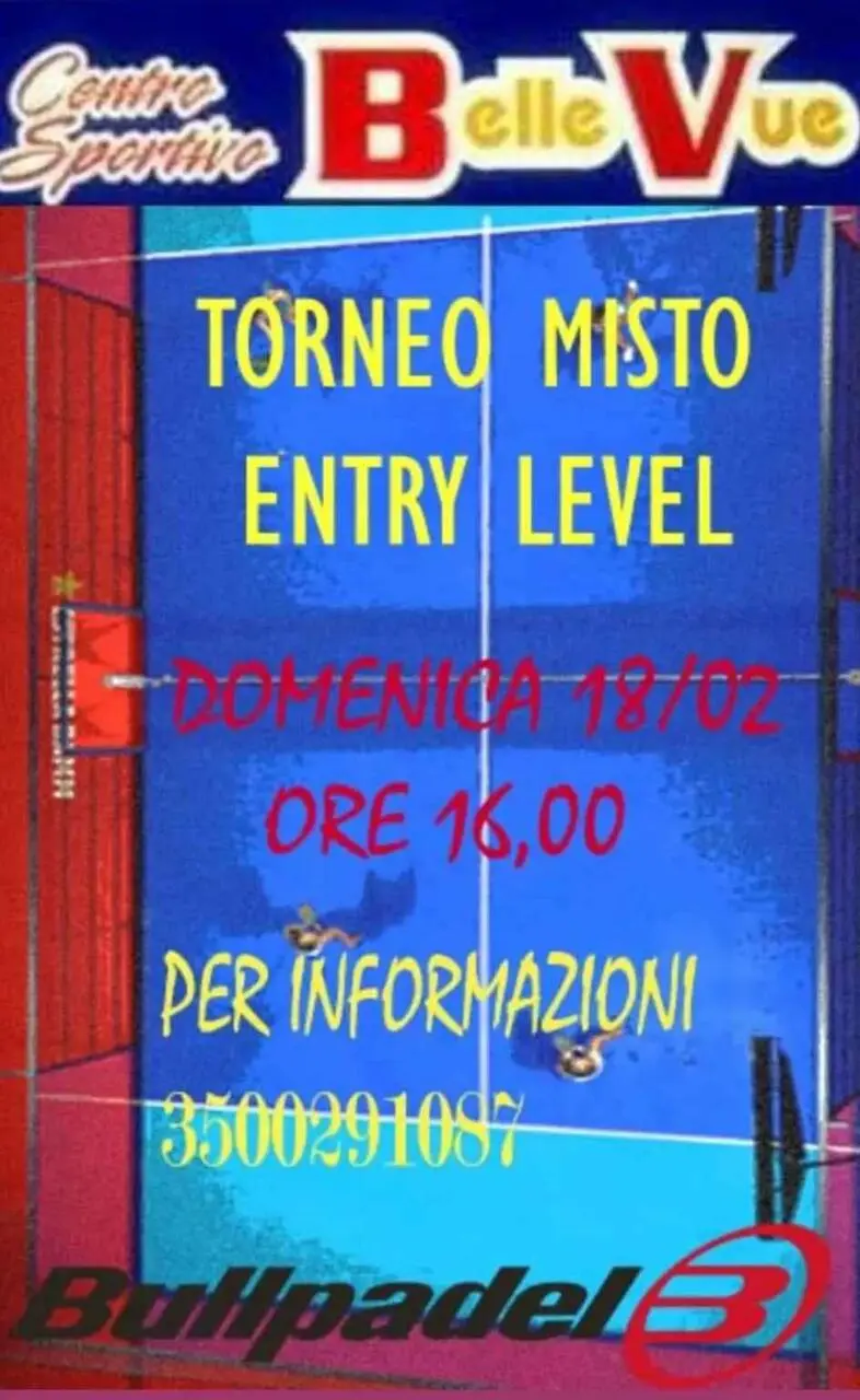 Ancora grande padel al Centro Sportivo "Belle Vue". Di fatto domenica 18 febbraio a partire dalle ore 16:00, si disputerà un torneo misto entry level. Per maggiori informazioni chiamare il 3500291087.