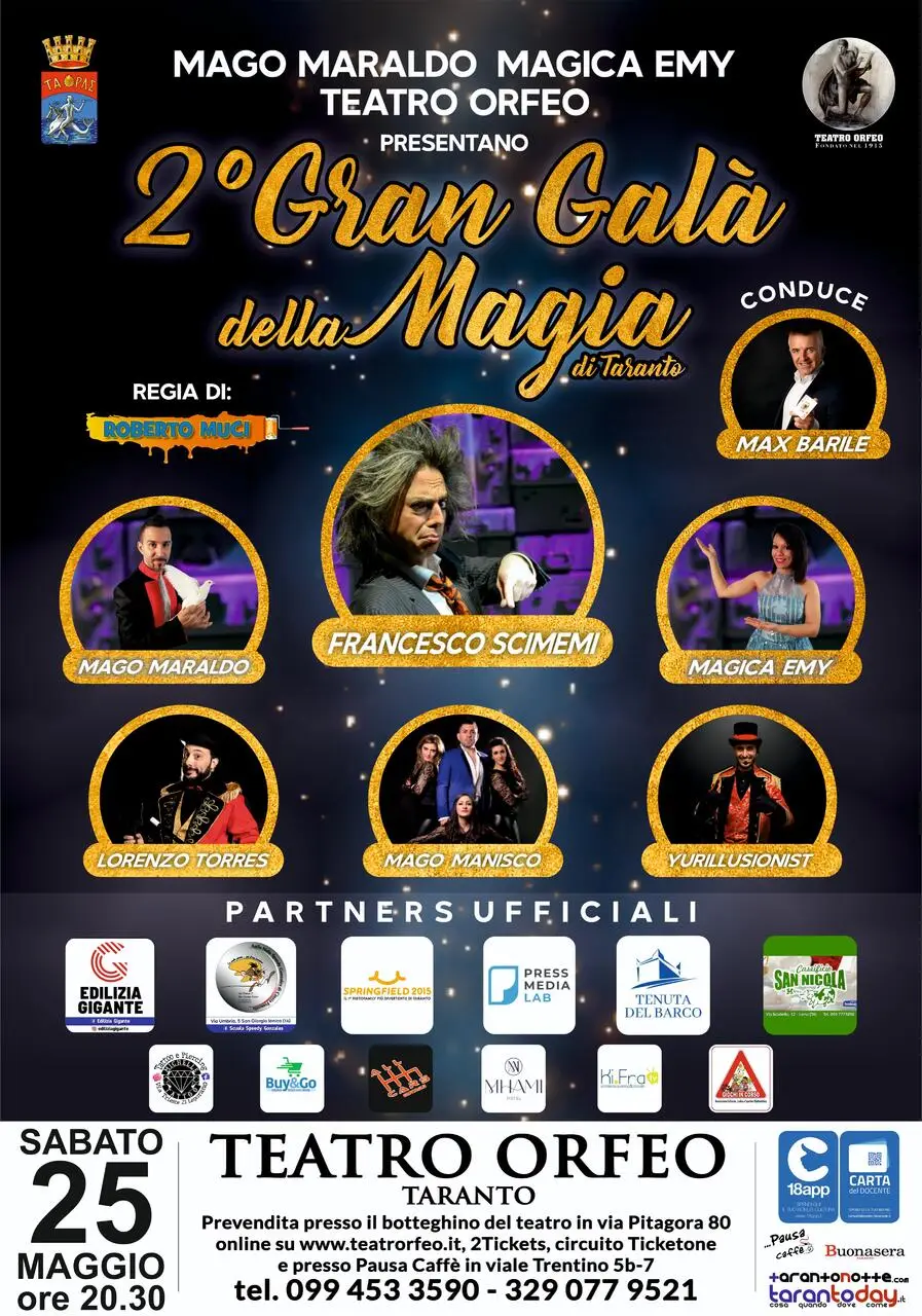 L'evento, che quest'anno si trasferisce nel teatro più importante di Taranto, l'Orfeo, anche coorganizzatore insieme a Mago Maraldo e Magica Emy, si terrà il prossimo 25 maggio con start alle ore 20:30.
