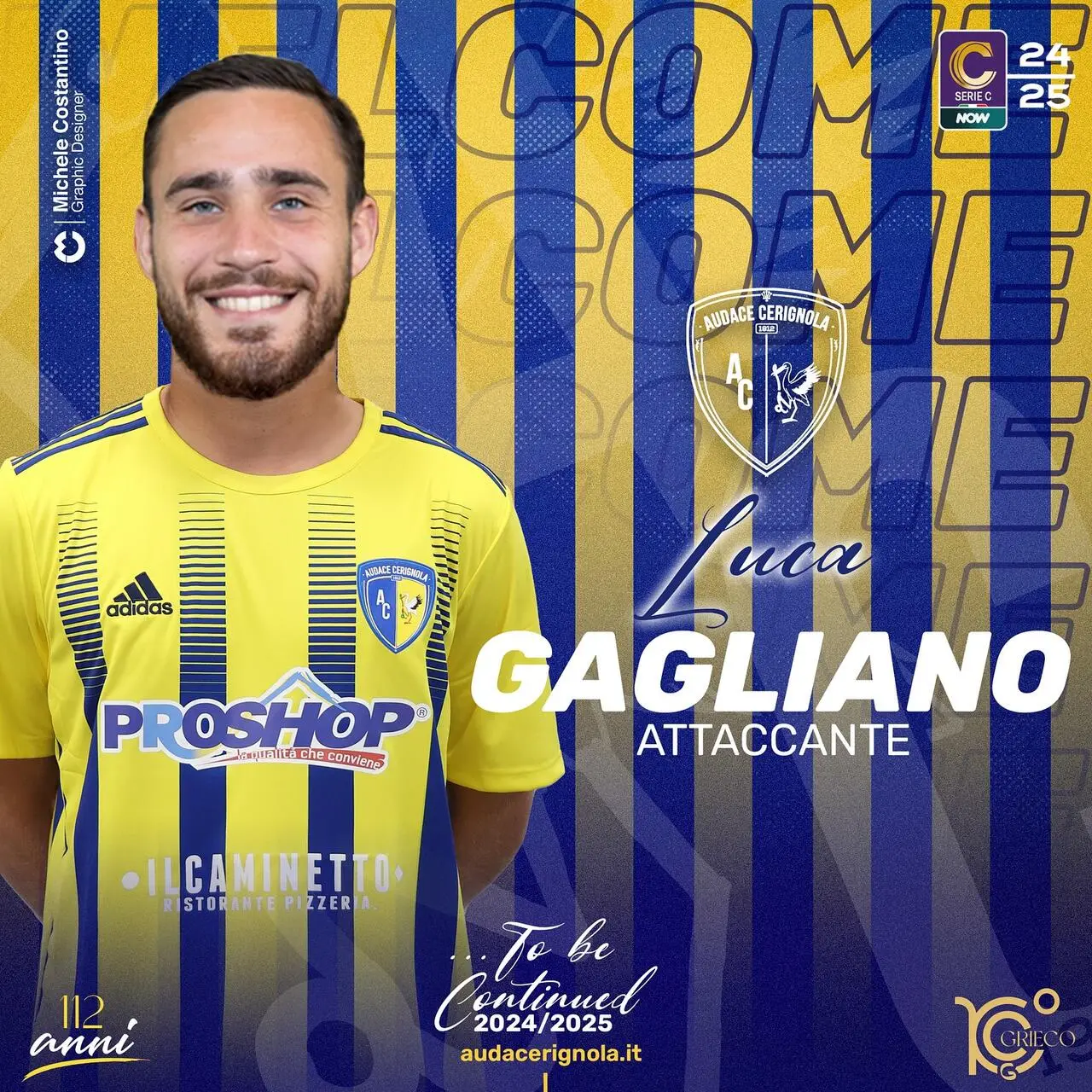 Gagliano, punta centrale, classe 2000, 182 cm dโaltezza, era legato per unโaltra stagione al Padova (30 giugno 2025). Ceduto a titolo definitivo dal Padova, si รจ legato allโAudace Cerignola fino al 30 giugno 2026.