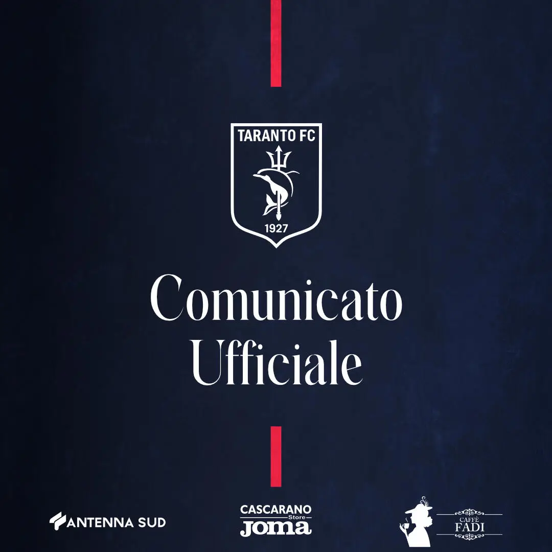 Il Taranto FC 1927 comunica che, nella giornata odierna, ha deciso di ritirare le squadre Under 17 e Under 15 dai rispettivi campionati a causa di difficoltà logistiche e organizzative.