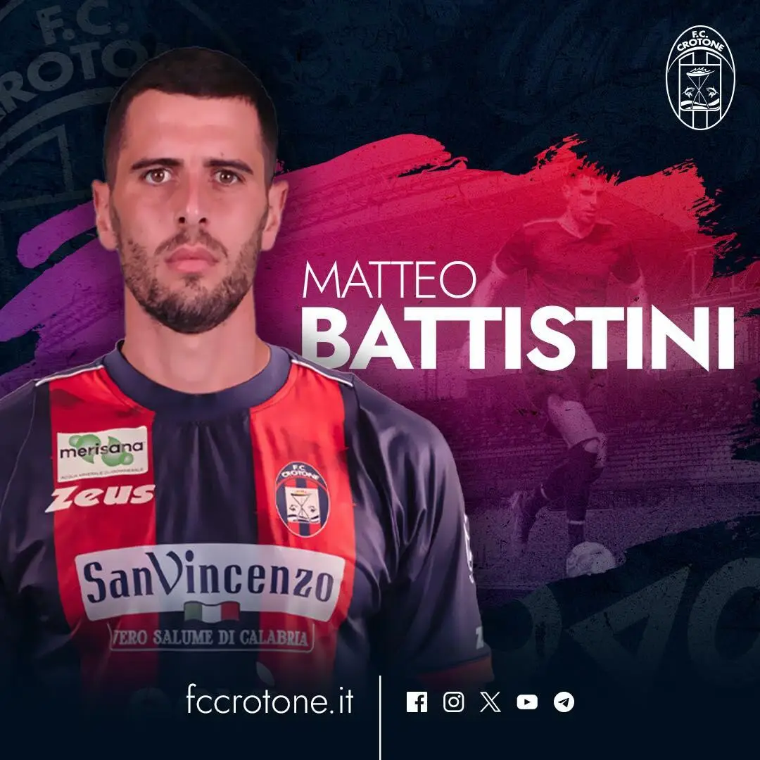 Il Football Club Crotone comunica di aver acquisito a titolo temporaneo con diritto di riscatto le prestazioni sportive del calciatore Matteo Battistini dal Calcio Lecco 1912.