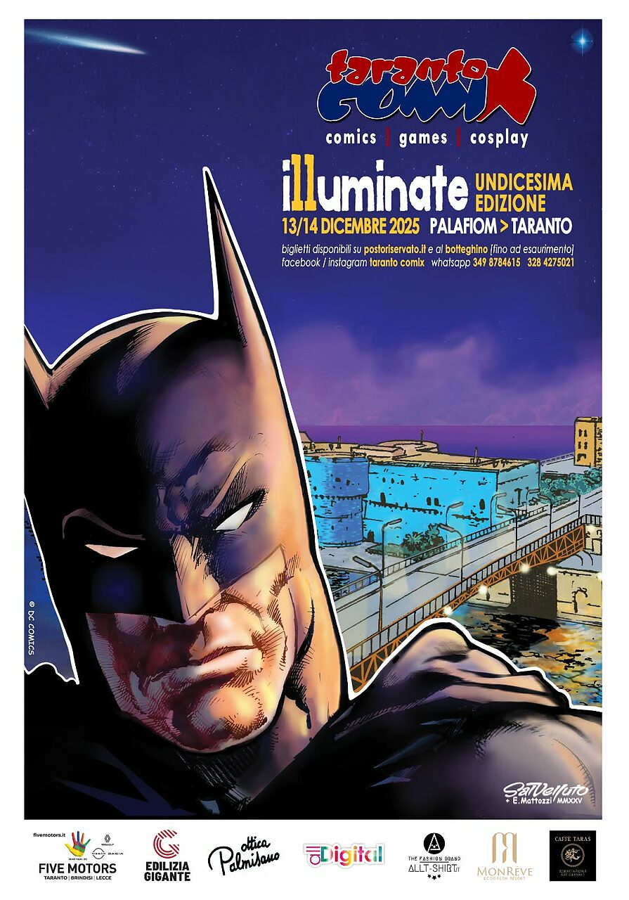 GLI OSPITI: “Puntiamo ad alzare l’asticella con ospiti e attrazioni che il pubblico ci richiede: spesso è difficile perché molti di loro sono impegnati come successo per alcuni… Avremo il fumettista per eccellenza Sal Velluto che ci ha regalato la magnifica immagine, affissa anche sulle strade di Taranto, con Batman nella nostra città arrivato per proteggerla: il messaggio che si vuol dare alla nostra Taranto è quello di tenere duro e continuare a credere in qualcosa di migliore. E’ il filo conduttore di questa nuova edizione. Inoltre, “undici” è un numero illumato come il nome dell’evento “Illuminante”. Non mancheranno altri fumettisti come Valerio Manisi grandissimo autore Disney e regista. Poi, grazie al contributo di Memao Books, avremo Yi Yang bravissima autrice cinese. E poi ancora ci sarà Alfredo Cassano con gli amici di Grafite che porteranno un altro fumettista qual è Rosario Raho. Non mancheranno i doppiatori, tra cui due grandissimi giovani talenti come Emanuele Suarez impegnato nel doppiaggio di Will Bayen nell’ultima stagione di Stranger Things e suo fratello Riccardo Suarez. Non mancherà l’intrattenimento per i più piccoli con un’area gioco ma soprattutto con la presenza di Richard HTT”.
