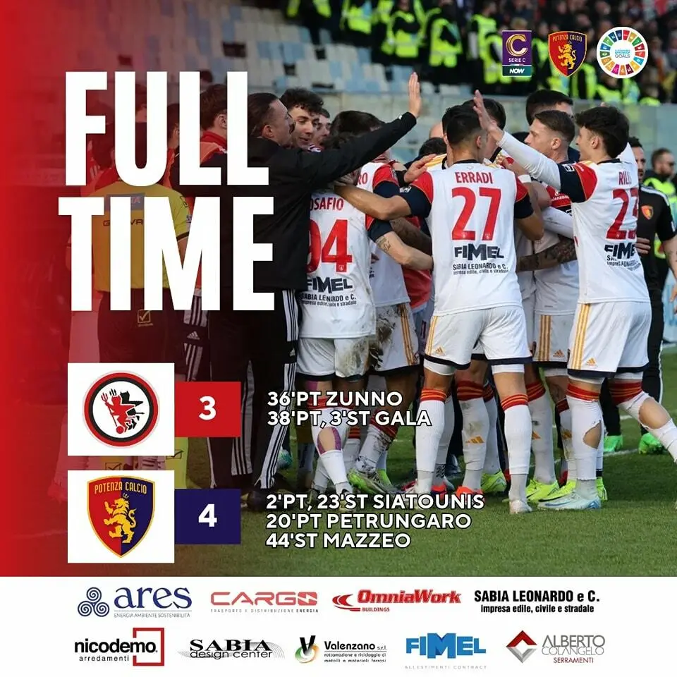 POTENZA (4-3-3): Alastra, Riggio (87' Mazzeo), Castorani, Caturano, Milesi, Rillo, Verrengia, Erradi (62' Selleri), Petrungaro (78' Schimmenti), Siatounis, Rosafio.