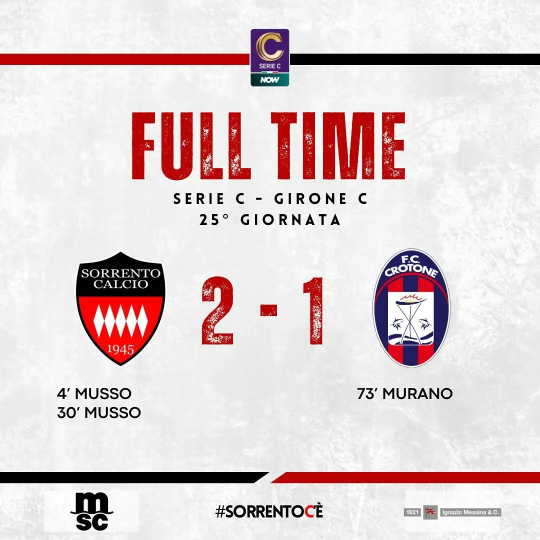 Serie C/C: prestigioso successo del Sorrento sul Crotone