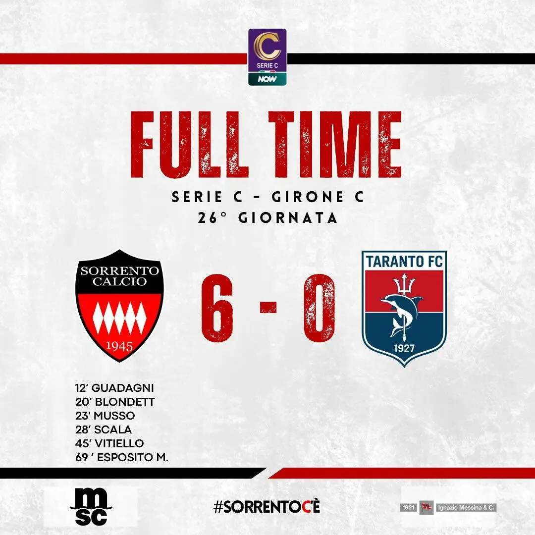 Taranto surclassato anche dal Sorrento