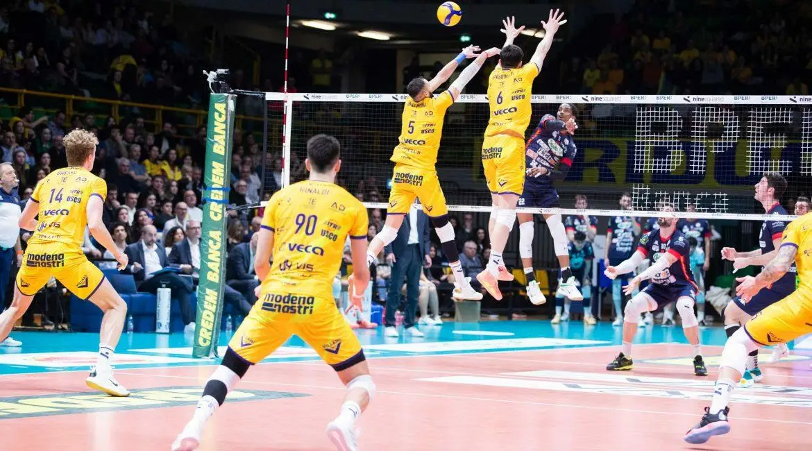 Modena schiera la diagonale Bruno-Davyskiba, al centro Brehme- Sanguinetti in 4, Juantorena-Rinaldi, libero Gollini
