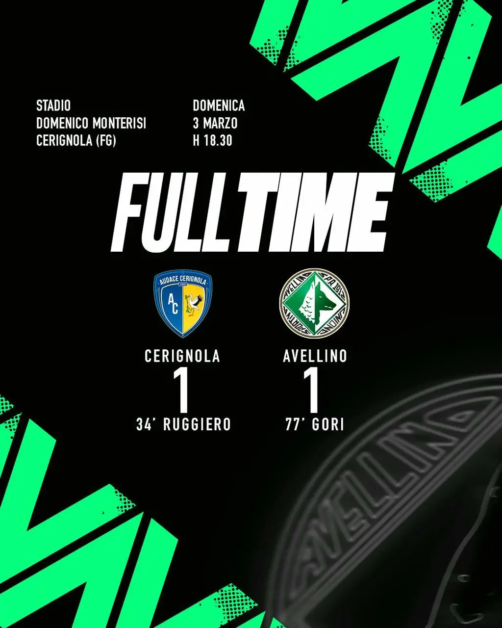 AUDACE CERIGNOLA-AVELLINO 1-1