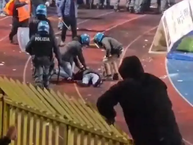 7. alcuni sostenitori del Foggia (circa 3), dopo aver scavalcato a loro volta la barriera del loro Settore, iniziavano una colluttazione, durata circa due minuti, con un tifoso della Casertana che rimaneva a terra privo di sensi e veniva soccorso prima dalla Polizia e successivamente dal personale sanitario con l'ambulanza;