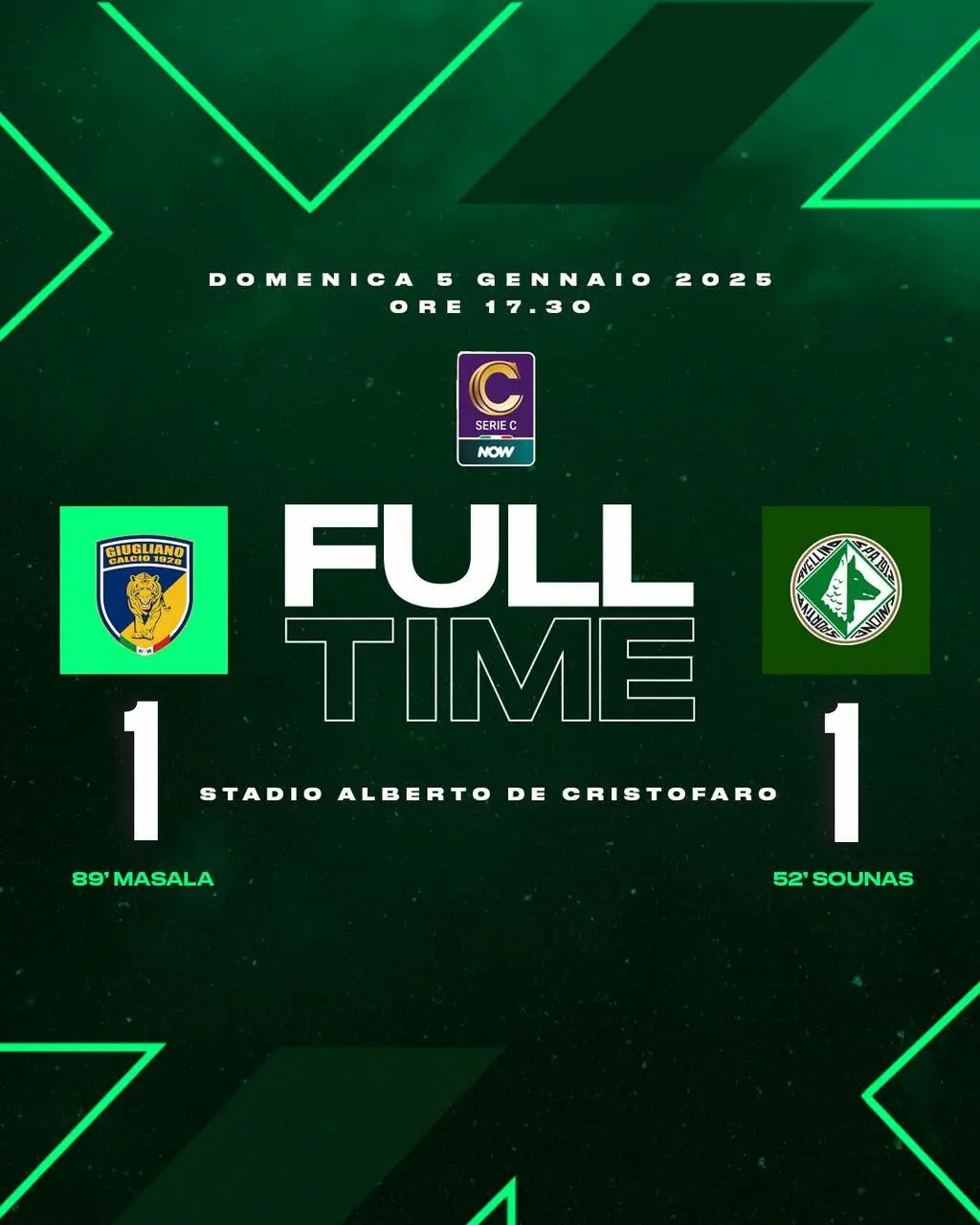GIUGLIANO (4-3-3): D. Russo; Valdesi, Solcia (1' st Minelli), Caldore, Oyewale; Celeghin, De Rosa (34' st Masala), Giorgione; Ciuferri (46' st Peluso), Padula (28' st De Paoli), D'Agostino (28' st Balde). A disp.: Barosi, Iardino, Acella, Nuredini, Lleshi. All.: Bertotto.