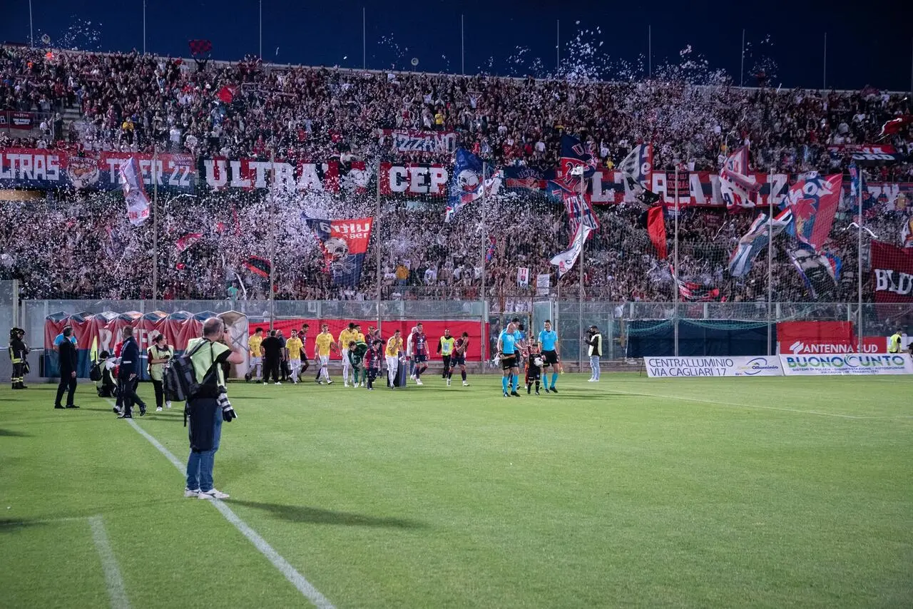 Da quasi la metà del primo tempo il popolo rossoblù esplode in una bolgia perché la propria squadra continuerà la partita con un giocatore in più e le speranza aumentano, anche se basta solo il pareggio.