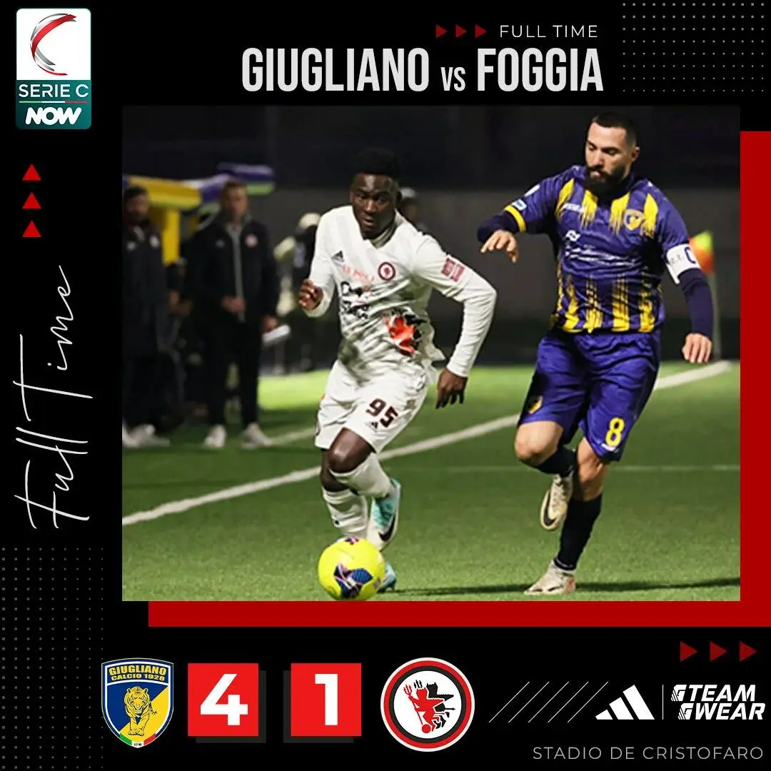 GIUGLIANO (4-3-3) Russo; Menna (15’pt Di Dio) Berman, Caldore, Yabre; Gladestony (34’st Sorrentino), Berardocco, De Rosa (25’st Vogiatzis); Oviszach (25’st Balde), De Sena, Ciuferri. A disposizione: Baldi, Rob Coprean, Scognamiglio, Diop, Oyewale, Grasso, Boccia, Aruta, De Francesco. Allenatore: Bertotto