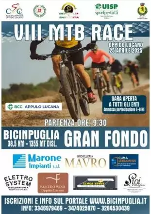 Oppido Lucano si prepara ad accogliere un evento che promette di unire sport, natura e competizione: la VIII EDIZIONE DELLA MARATHON MTB RACE, organizzata dalla A.S.D. CICLOAMATORI OPPIDO LUCANO, in programma venerdì 25 Aprile 2025. Questo appuntamento, che fa parte del prestigioso Campionato Granfondo BICINPUGLIA & BASILICATA, rappresenta un’occasione imperdibile per tutti gli amanti della mountain bike.