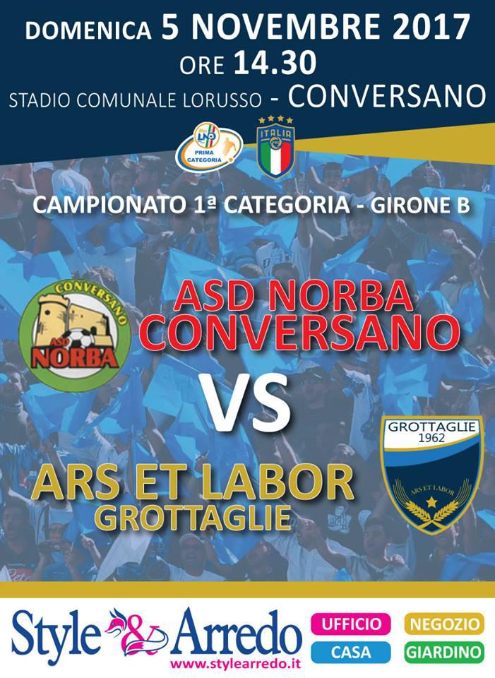 Dopo il Rutigliano, in casa, altro scontro diretto all’orizzonte per l’Ars et Labor Grottaglie in quel di Conversano contro il Norba, secondo in classifica. Gara che si preannuncia equilibrata, vibrante e aperta a qualsiasi risultato. Il Conversano, partito tra le favorite del girone proprio come i biancoazzurri, ha una rosa giocatori di gran valore. Le due compagini sarebbero a pari punti se il Grottaglie non fosse partito con la penalizzazione di un punto. Il Grottaglie si presenta al cospetto del Norba con due vittorie consecutive sulle spalle, con la consapevolezza delle proprie potenzialità e probabilmente anche più maturo rispetto ad un paio di settimane fa. I biancoazzurri vogliono dare continuità ai risultati per scalare la classifica la cui testa dista appena 4 punti. Il match di Conversano, allo stato dell’arte, sembra essere tra i più insidiosi, tornare a casa con un risultato positivo potrebbe significare tanto per il Grottaglie soprattutto in termini di morale e autostima. I baresi hanno 13 punti in classifica hanno vinto 4 partite, ne hanno pareggiata una e perso lo scontro diretto contro il Brilla, hanno segnato 16 reti subendone 5, il secondo miglior attacco e la seconda miglior difesa del girone. In casa hanno vinto tre partite su tre (San Vito, Don Bosco Manduria e Manduria) subendo solo una rete e segnandone 10, i gialloverdi tra le loro mura sembrano davvero infallibili. Il Grottaglie, sull’erba sintetica del Lorusso, deve sfoderare una prestazione di alta qualità, decisione, agonismo e concentrazione ai massimi livelli per tutta la durata della partita, solo con il rispetto di questi dettagli sarà possibile ottenere ciò che effettivamente si vuole, la vittoria.