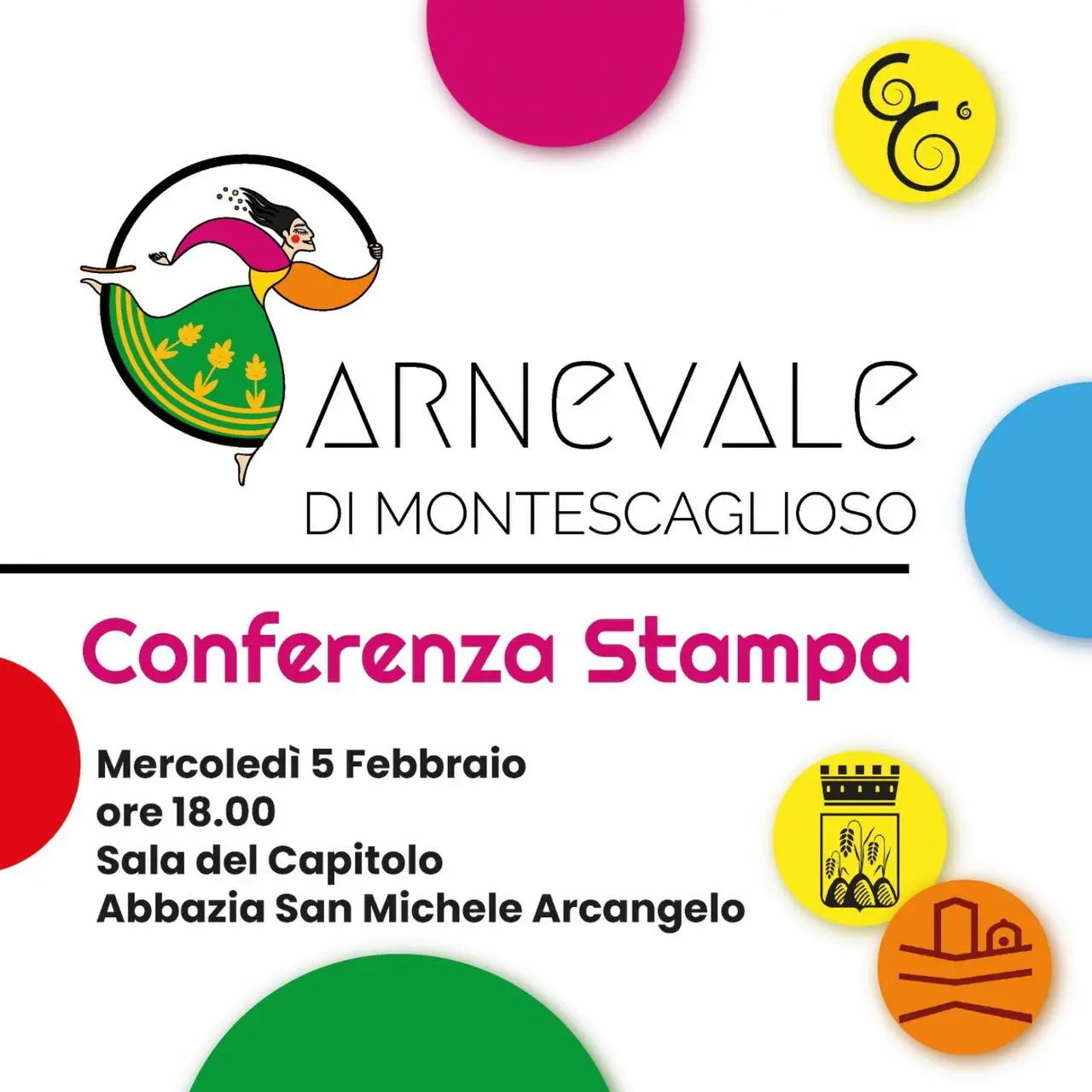 Il Carnevale di Montescaglioso verrà ufficialmente presentato con una conferenza stampa prevista per mercoledì 5 febbraio, alle ore 18:00, presso l’Abbazia di San Michele Arcangelo nella Sala Capitolo.