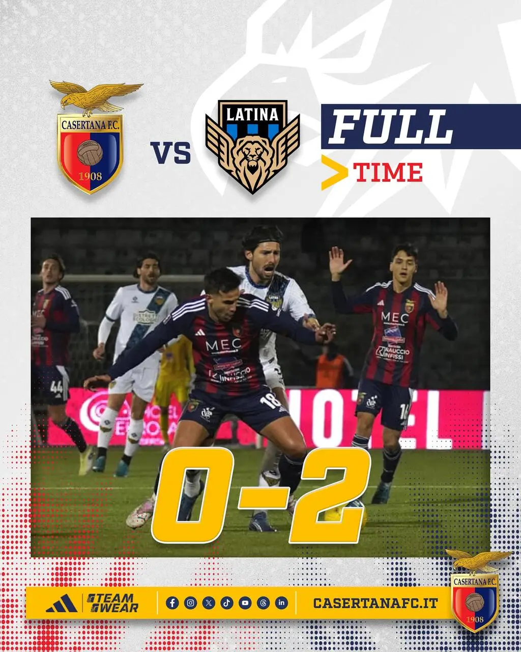 Casertana (3-4-2-1): Zanellati; Heinz, Gatti, Bacchetti; Paglino (73’ Asencio), Collodel, Matese (52’ Bianchi), Falasca; Bakayoko, Deli (86’ Satriano); Carretta (73’ Iuliano). A disposizione: Pareiko, Vilardi, Fabbri, Salomaa, Proia, Giugno, Rocca. Allenatore: Manuel Iori