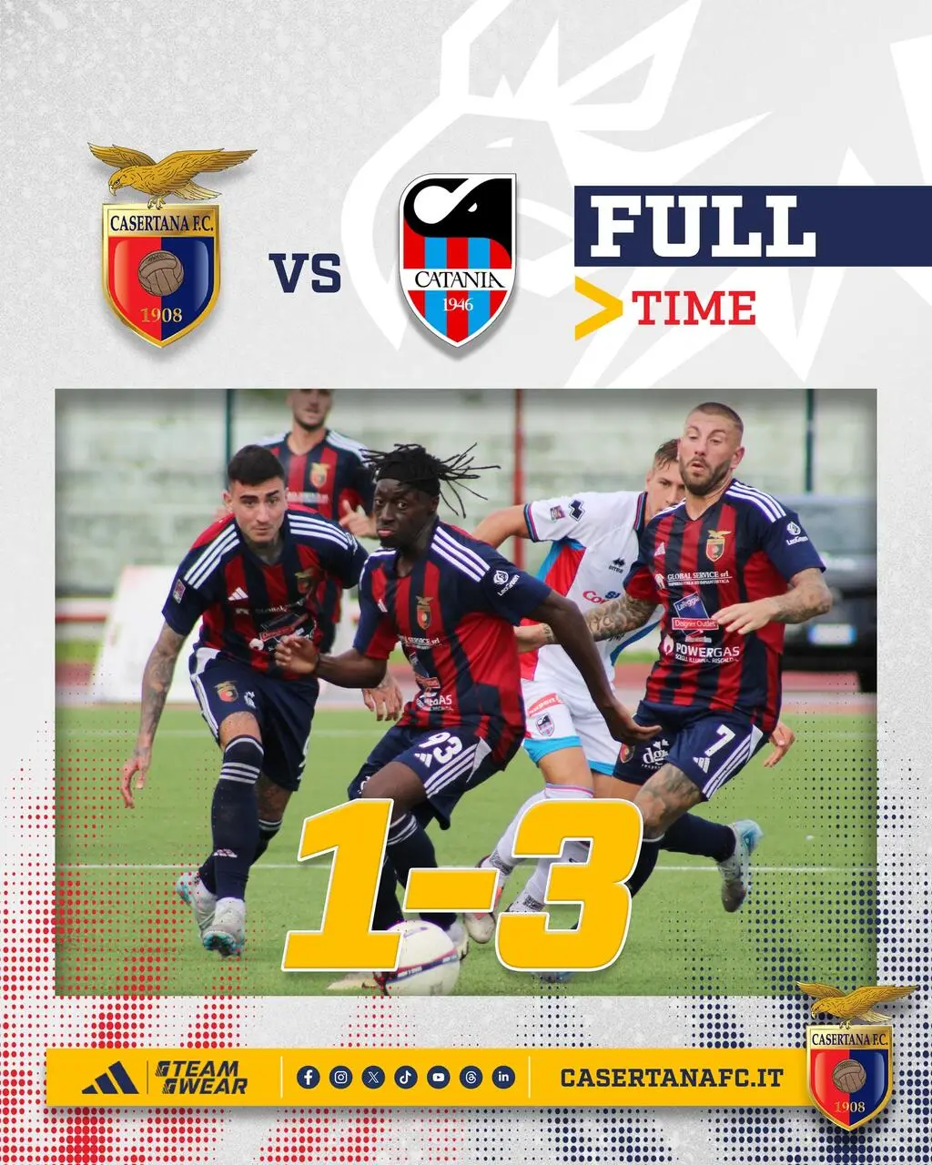 CASERTANA (4-2-3-1): Zanellati; Mancini, Bacchetti, Gatti, Falasca; Collodel, Proia; Damian, Carretta, Bakayoko; Asencio.