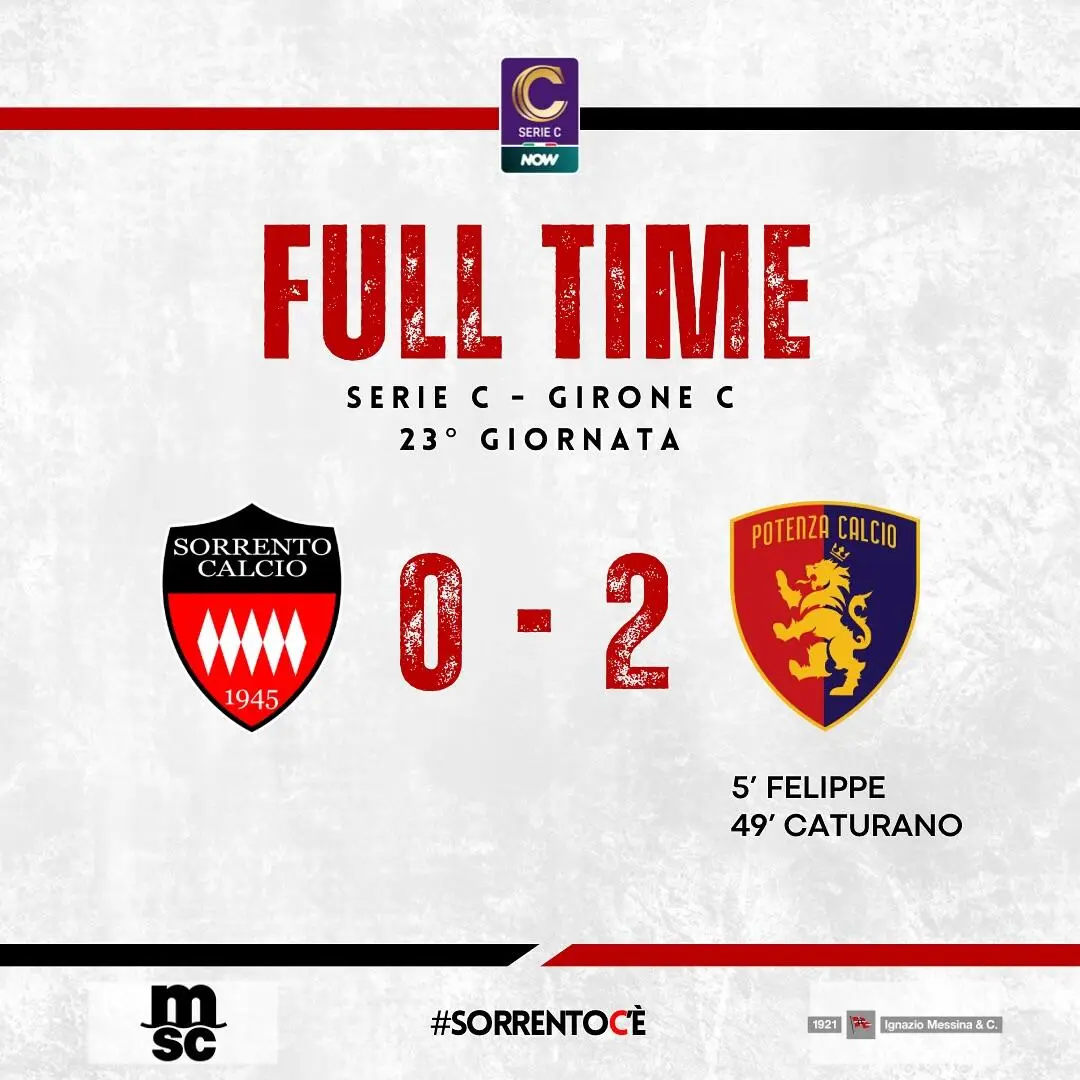 Serie C/C: il Potenza espugna "casa sua" battendo il Sorrento